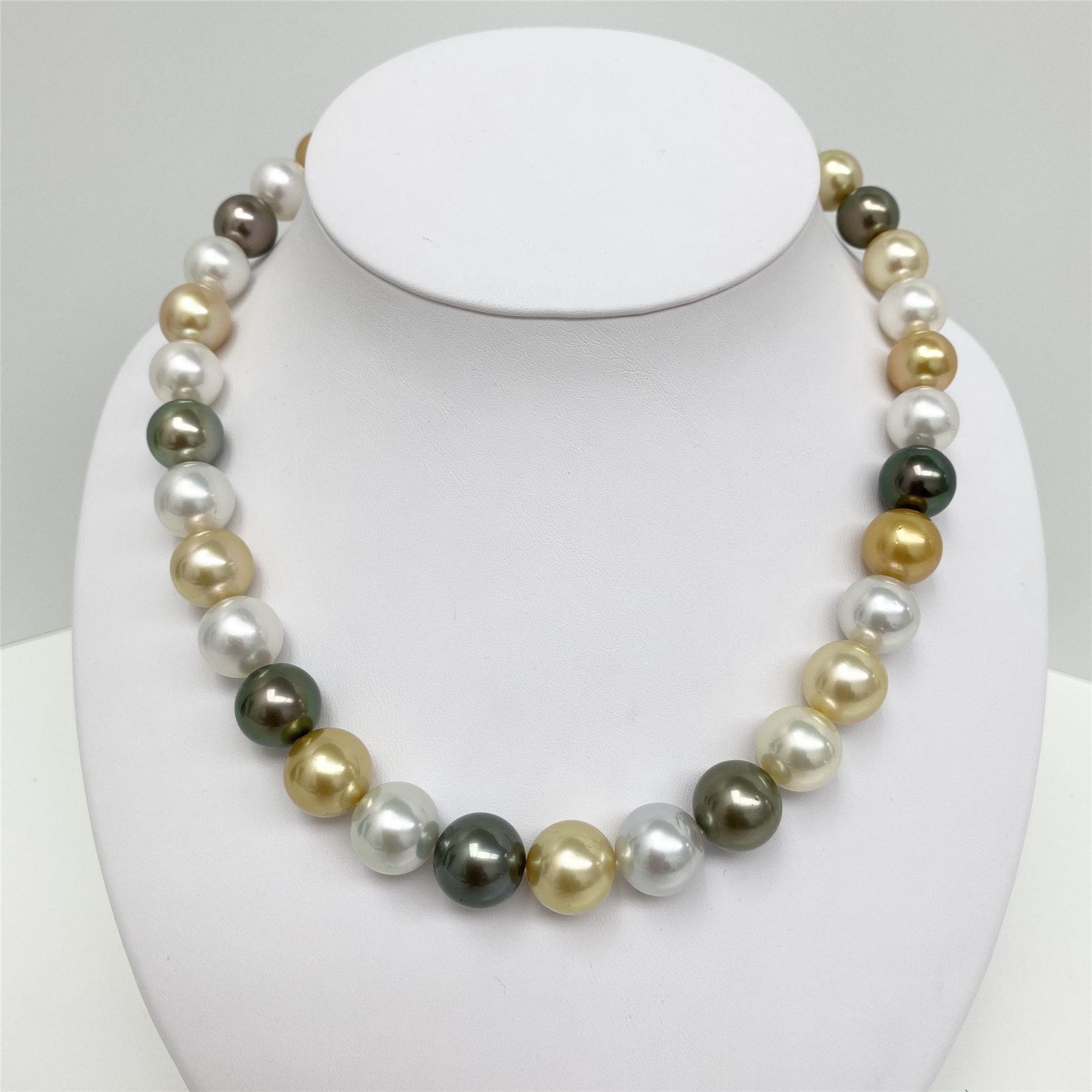 12-14 South Sea White and Golden and Tahitian Round Pearl Necklace with Gold Clasp