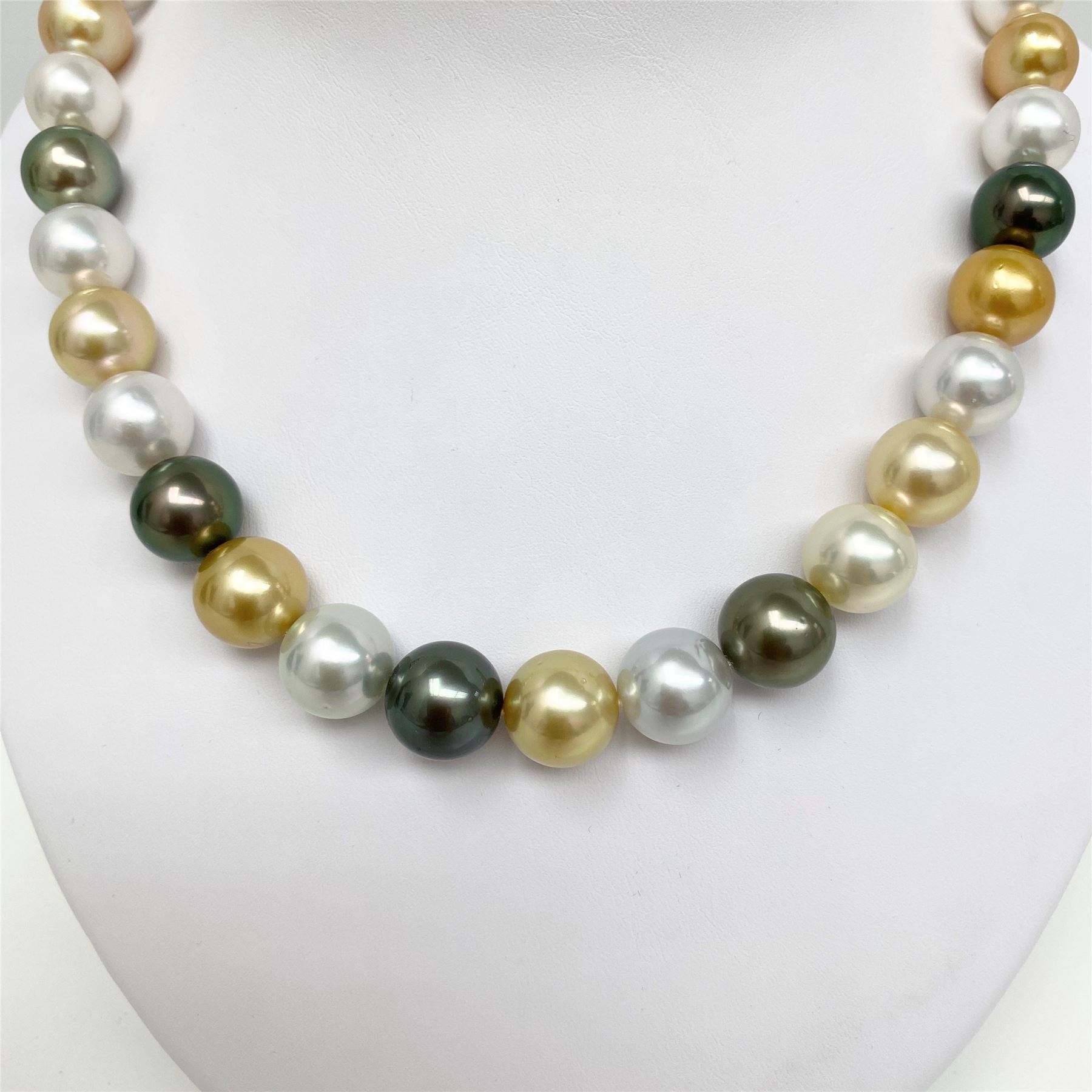 12-14 South Sea White and Golden and Tahitian Round Pearl Necklace with Gold Clasp