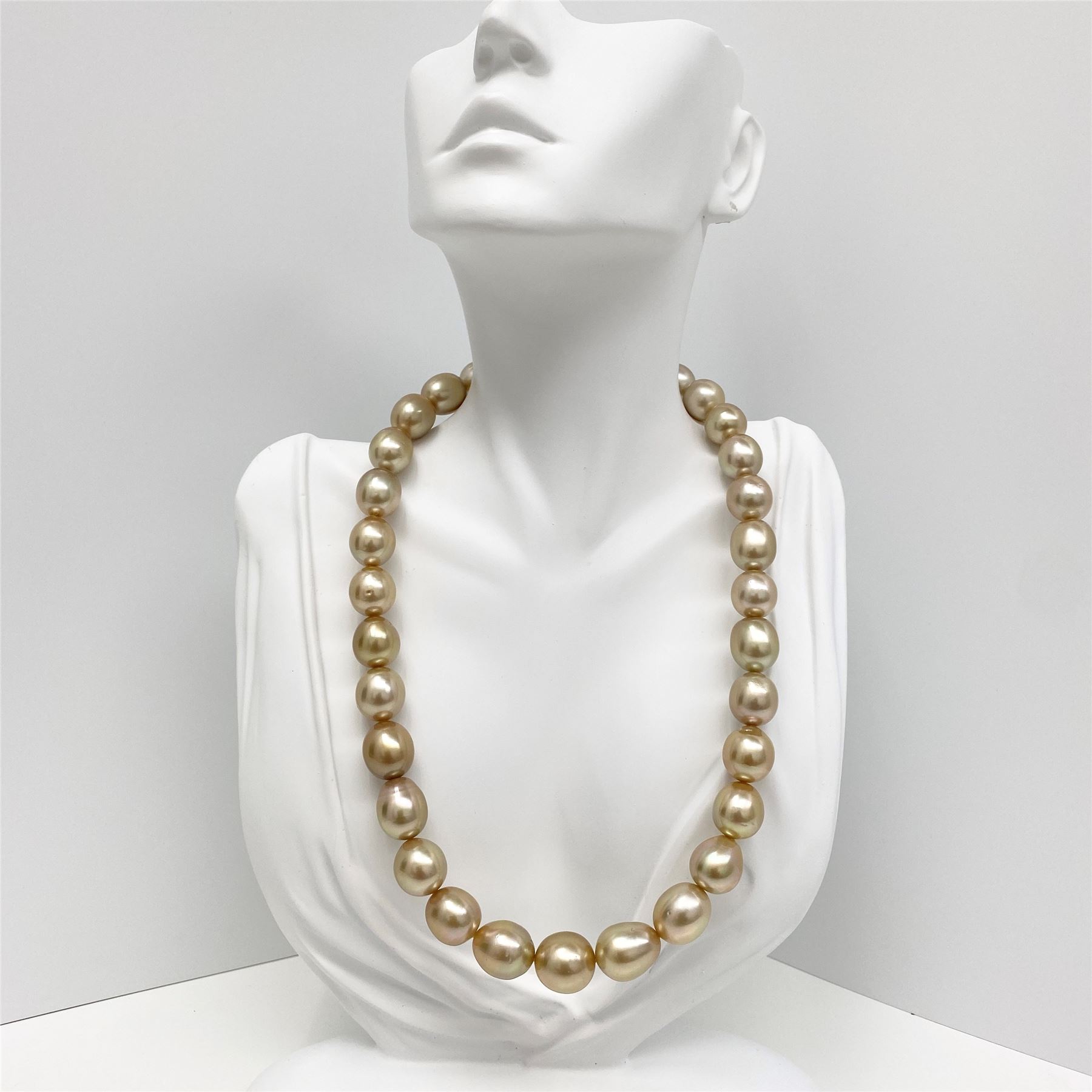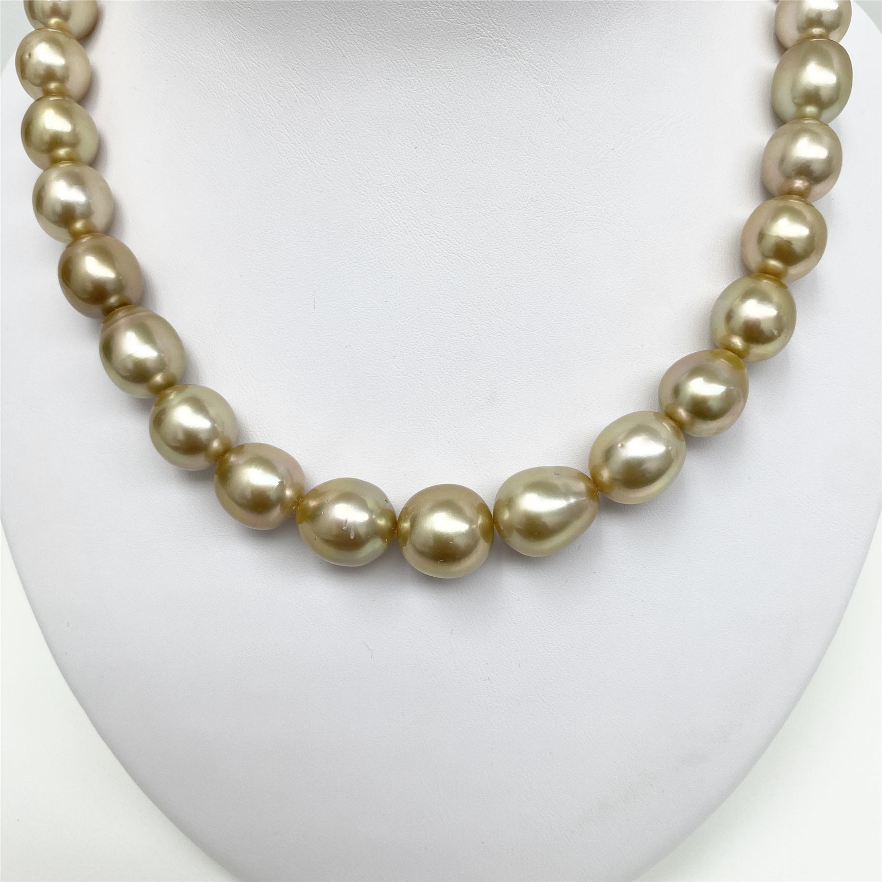 12-14mm Golden South Sea Drop/Oval Pearl Necklace with Gold Clasp