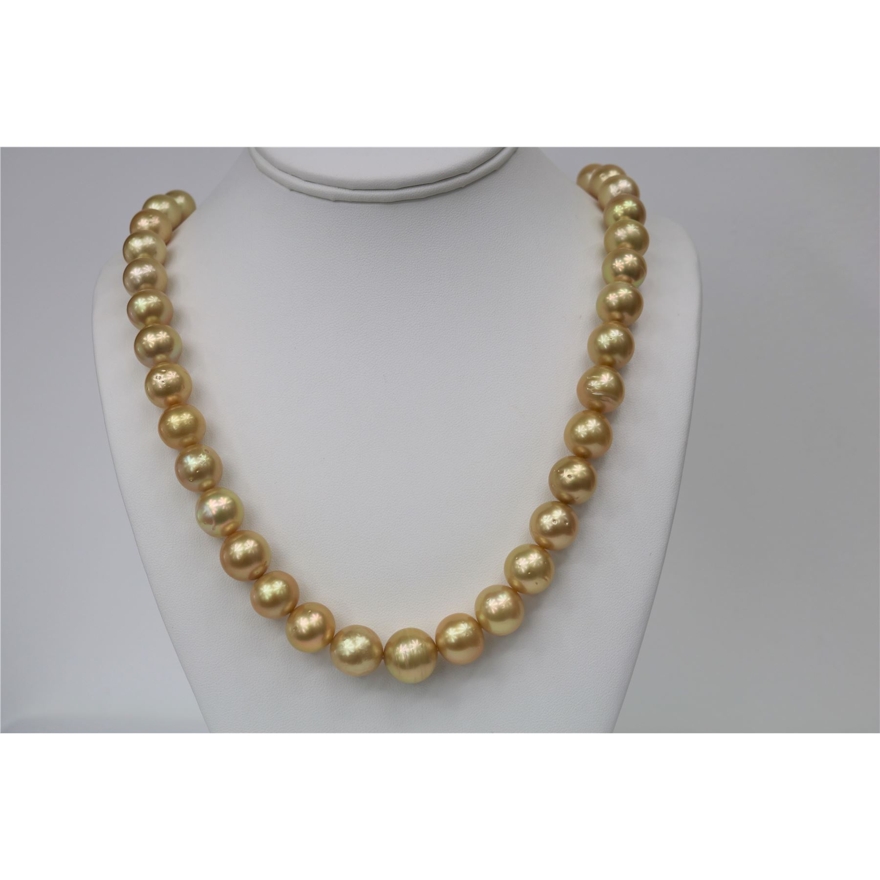 12-14mm South Sea Golden Near Round Necklace with Gold Clasp