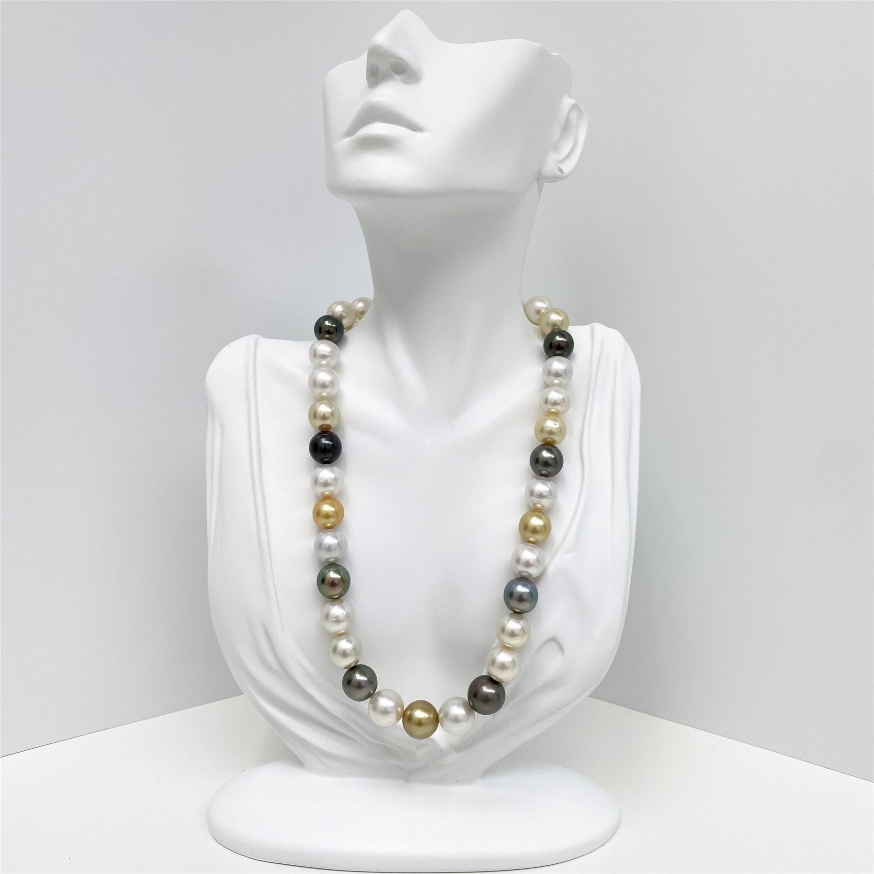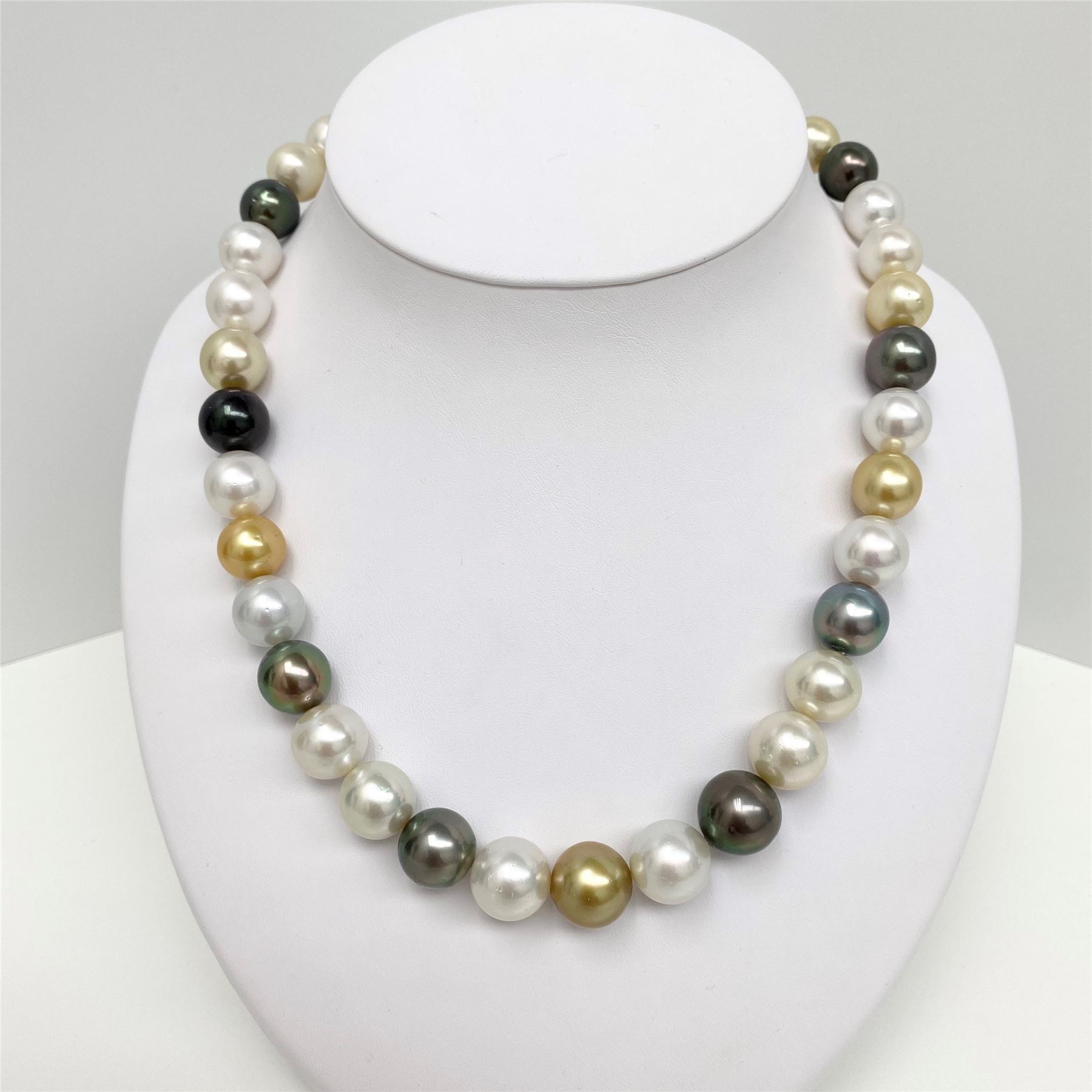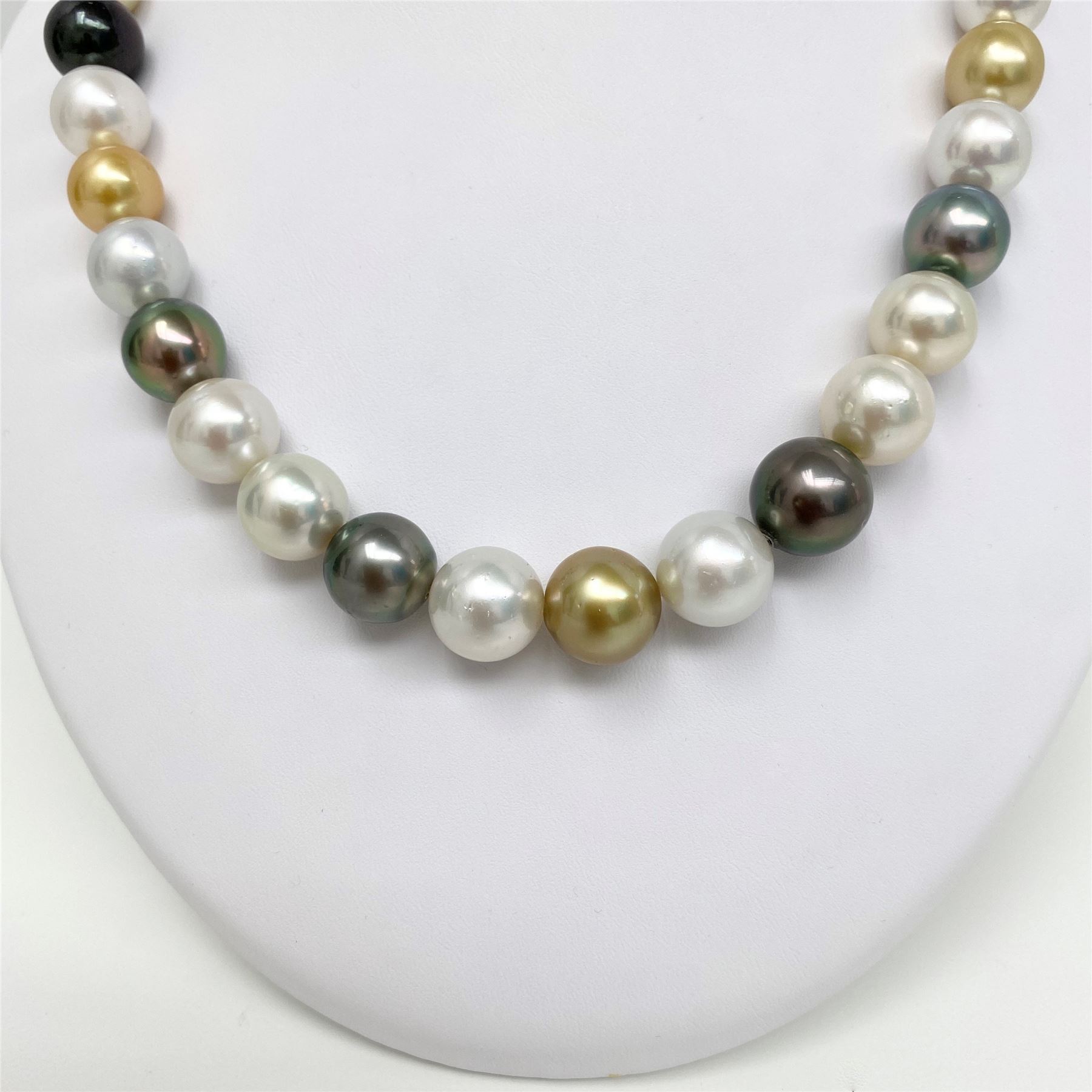 12-14mm South Sea and Tahitian Multicolor Round/Near-Round Pearl Necklace with Gold Clasp