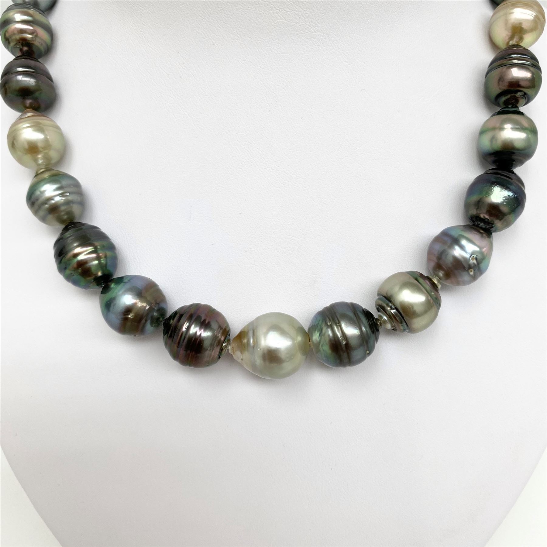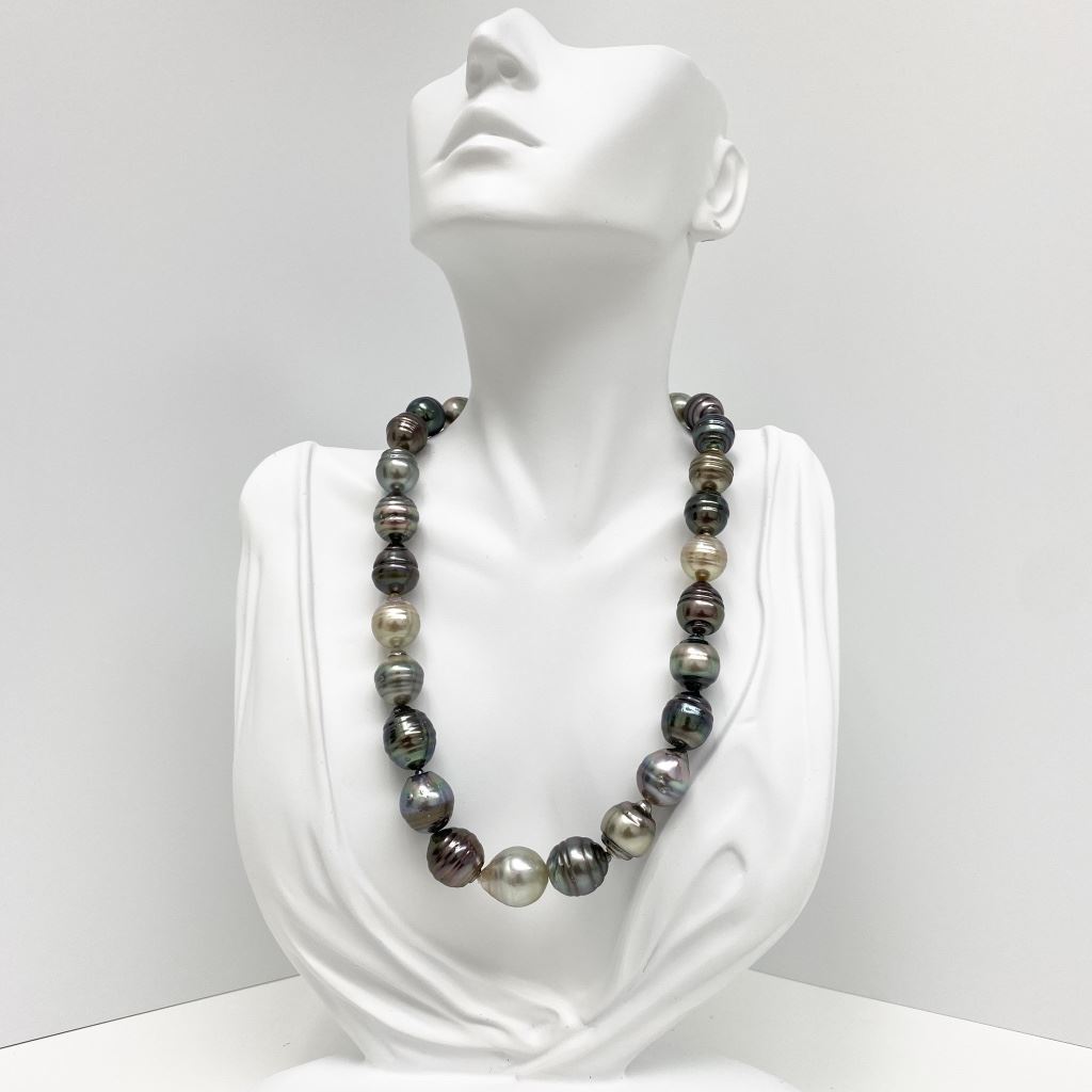 12-14mm Tahitian Multicolor Circle Baroque Pearl Necklace with Gold Clasp
