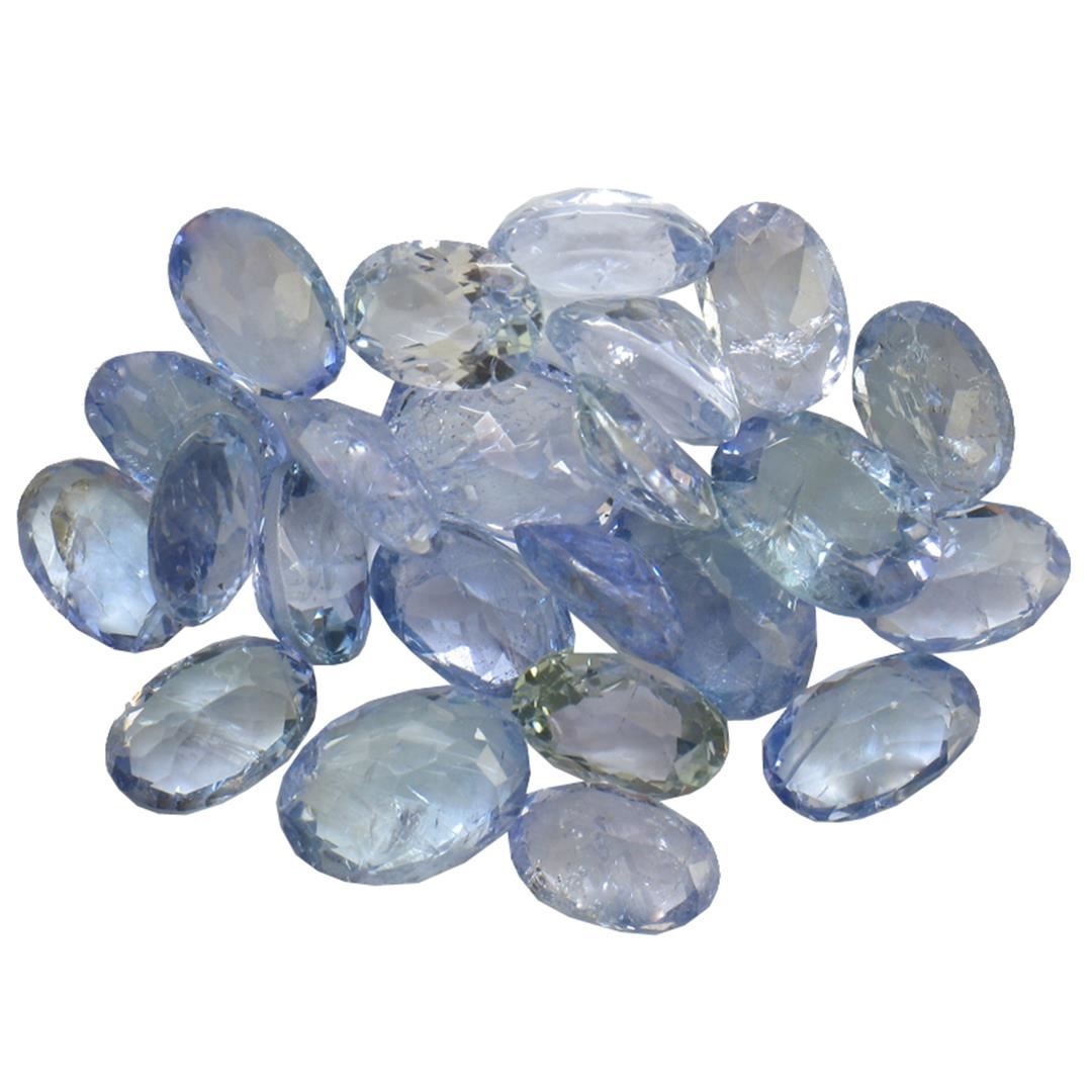 Twenty-three oval mixed cut natural tanzanites exact total weight 12.15ct., clarity is slightly included, type I, medium dark, very slightly grayish, bluish violet color, (GIA bV 6/3), cut is good. Transmitting light with a minimum of distortion, transparent. Naturally occurring internal & external characteristics are present. Color grade is an average for the group. Tanzanite is a very rare gemstone that is only found in the country of Tanzania. Originally discovered in 1967. Tiffany & Company, named the stone Tanzanite. It is found in the Usumburu Mountains that border the Umba Valley of northern Tanzania. Tanzanite occurs in gray, brown, violet, blue, reddish-purple, & green. The gem is interesting because of its exceptional pleochroism. Rotated in different directions a tanzanite will exhibit multiple changes of color. Tanzanite has a low tolerance to ultrasonic cleaning, and should not be cleaned using this method. Westfield Appraised at $1,170.00.