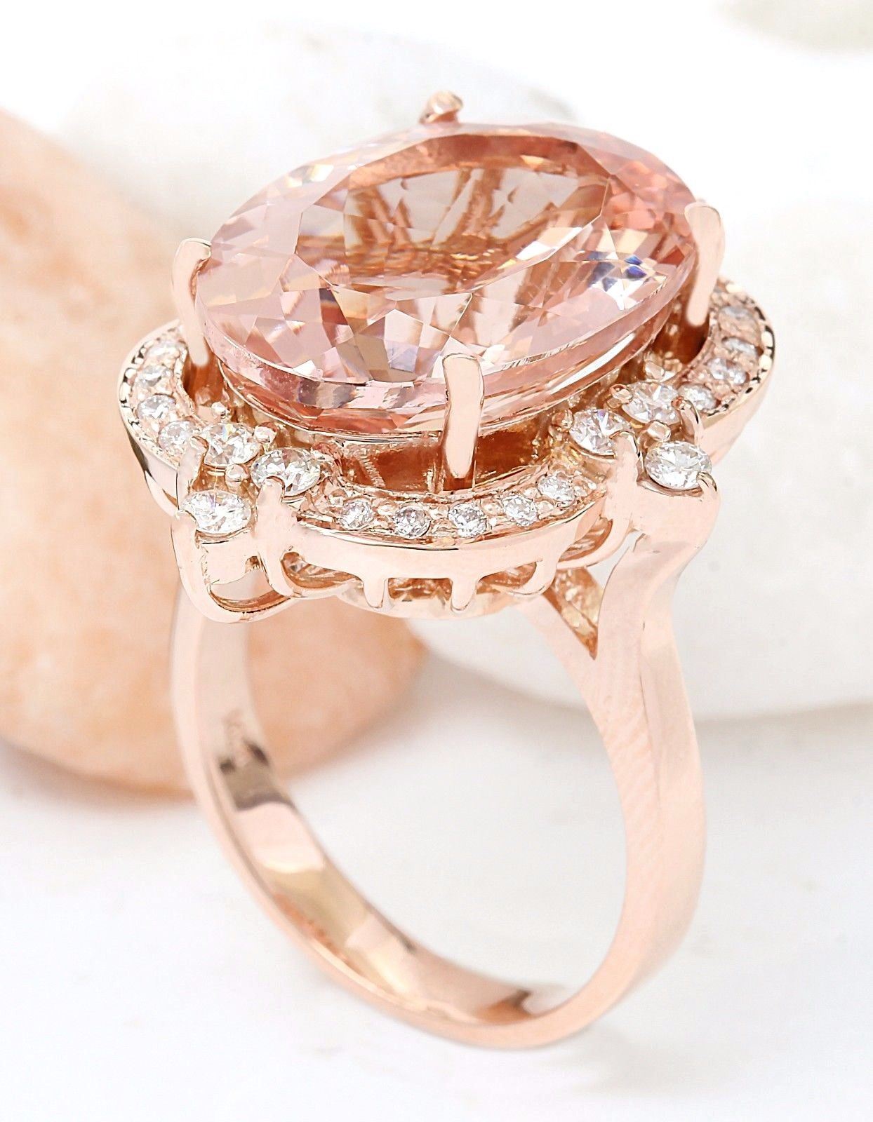 12.16 Carat Natural Morganite 14K Solid Rose Gold Diamond Ring