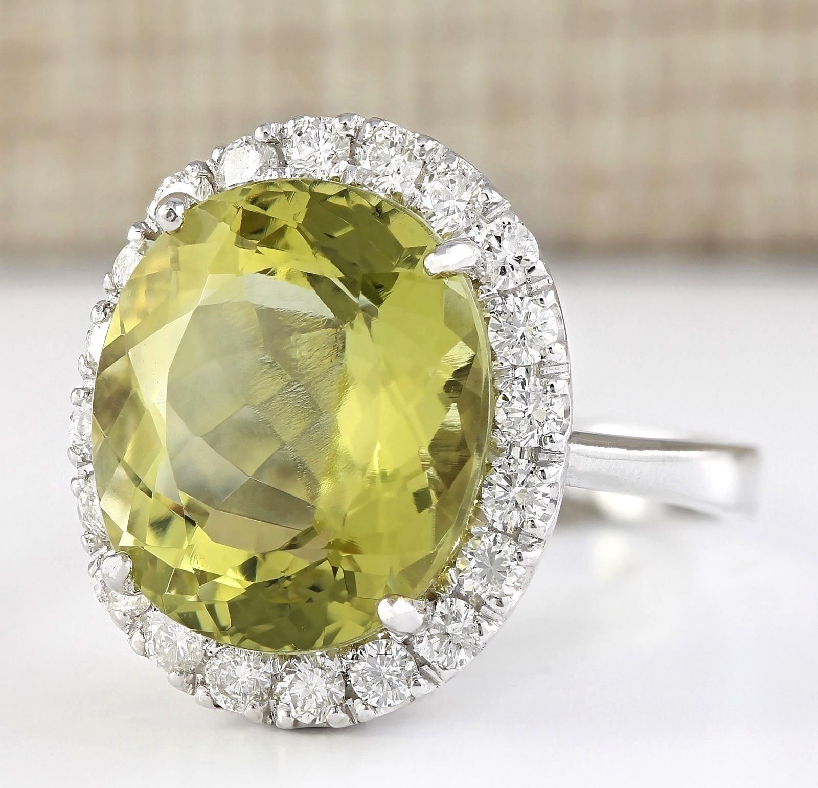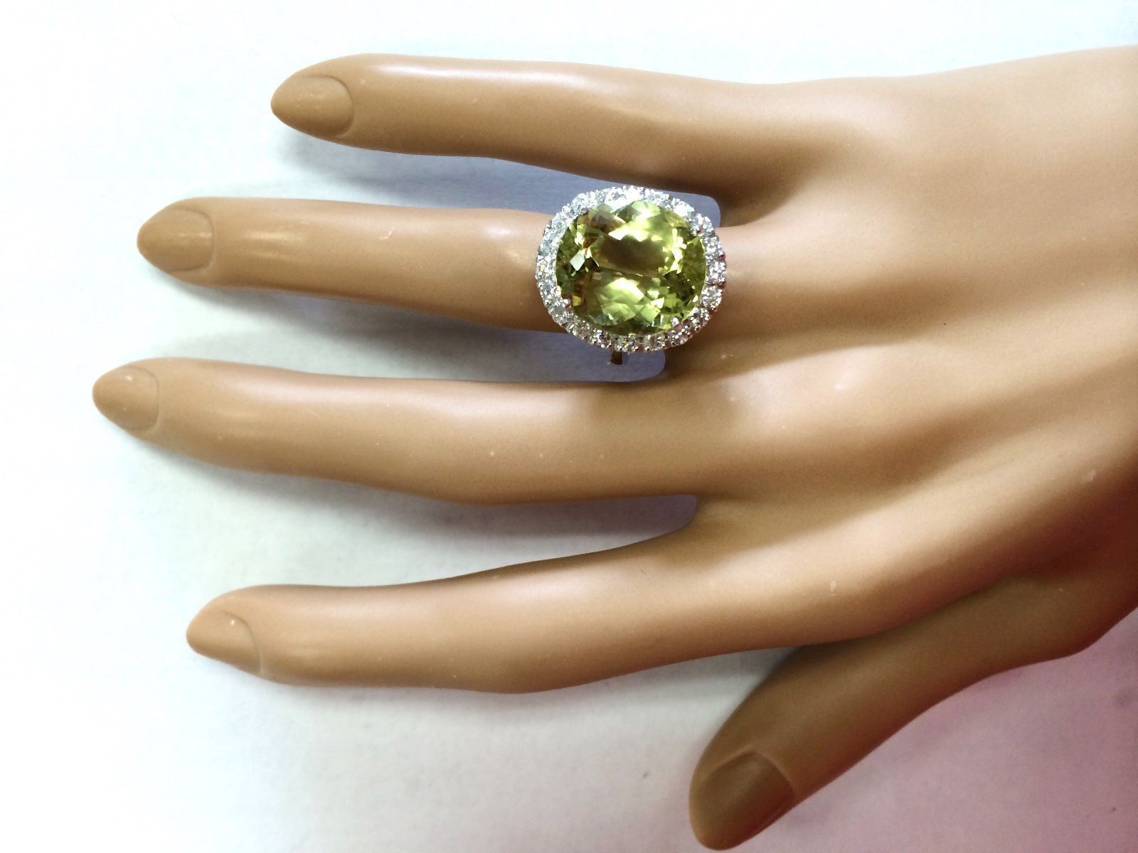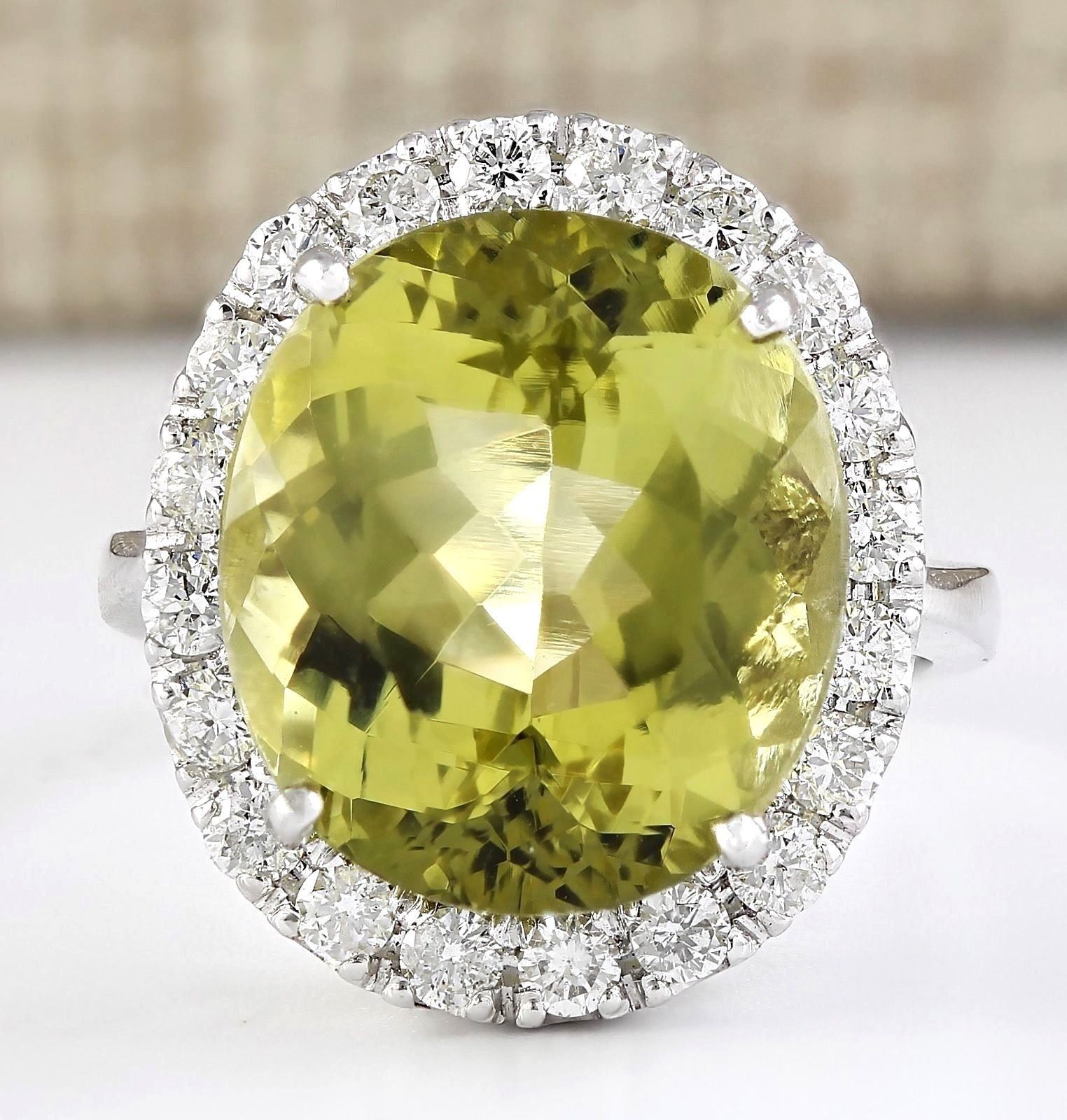 12.16 CTW Natural Yellow Beryl And Diamond Ring 18K Solid White Gold