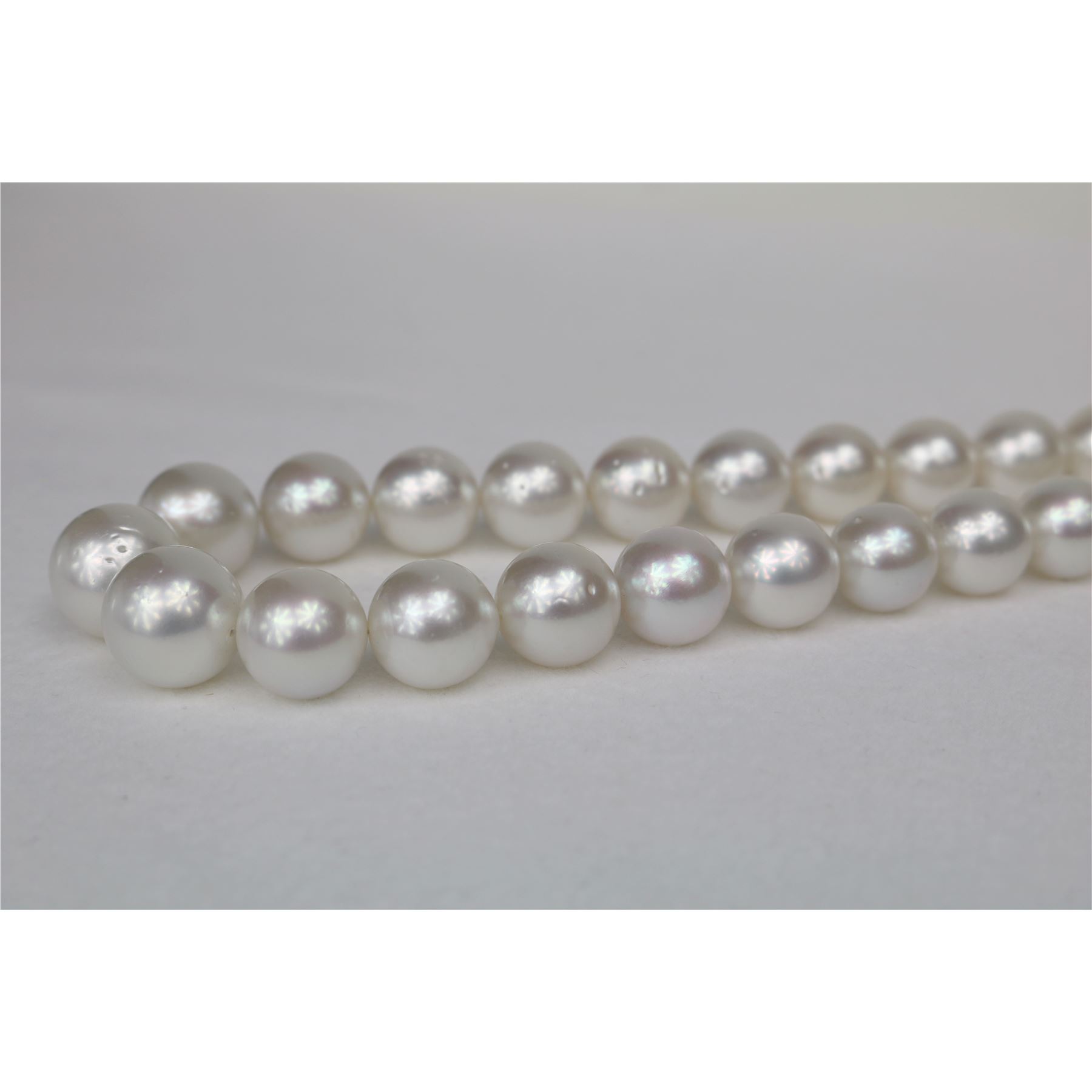 AAA Luster, Round South Sea White from Australia, 18 inches hand knotted with gold fishhook clasp #CP32
