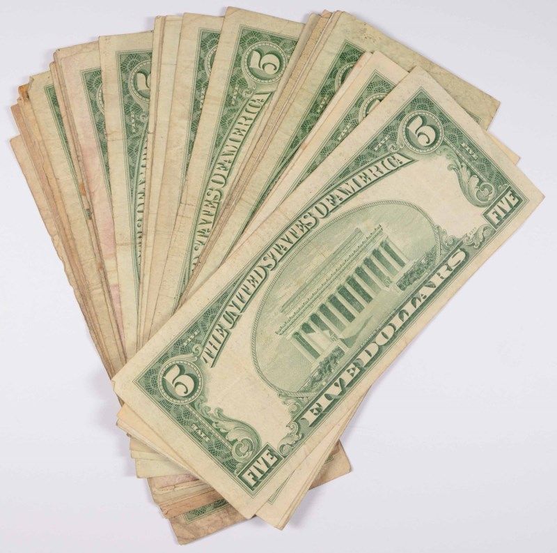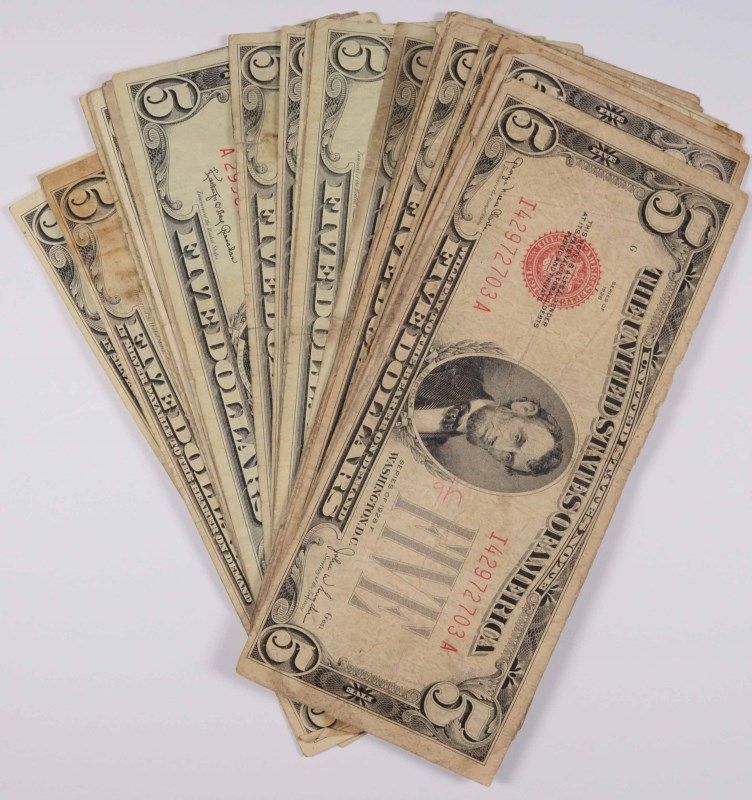 ( 12 ) 1928 $5.00 RED SEALS, ( 10 ) 1963 $5.00 RED SEAL ( 8 ) $5.00 SILVER CERTS