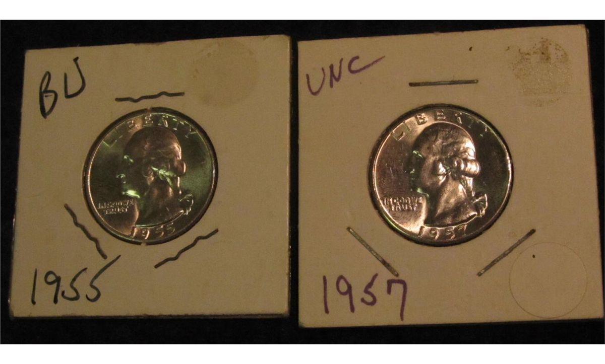 12. 1955 P & 57 P Gem BU Silver Washington Quarters.