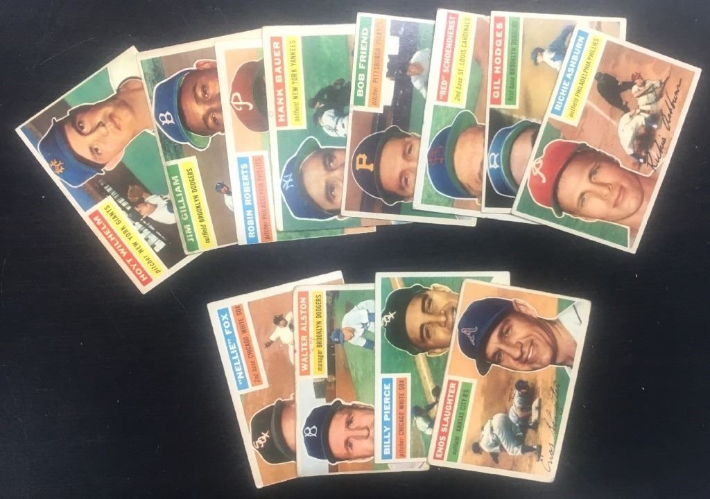 #8ALSTON, #109 SLAUGHTER, #1138 FOX, #120 ASHBURN, #145 HODGES, #160 PIERCE, #165 SCHOENDIENST, #177 BAUER, #180 ROBERTS, #221 FRIEND, #280 GILLIAM, #307 WILHELM. (ALL GREY BACK EXCEPT 1) EX-VG/EX. (5)PENCILED