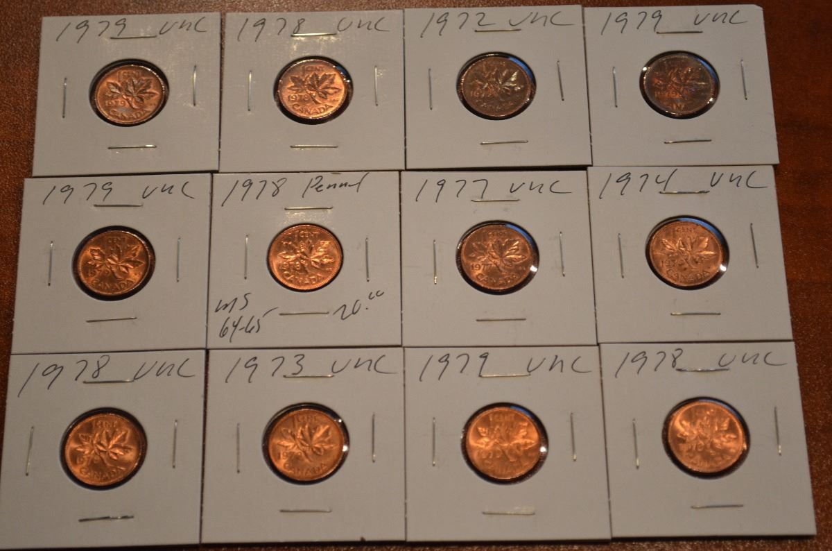 (12) 1970's Mixed Canada 1-Cent - BU/UNC