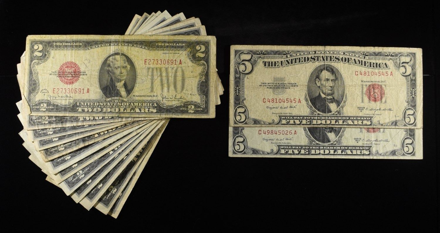 INCLUDES (5) 1928 $2. ESTIMATE $150 - $200.