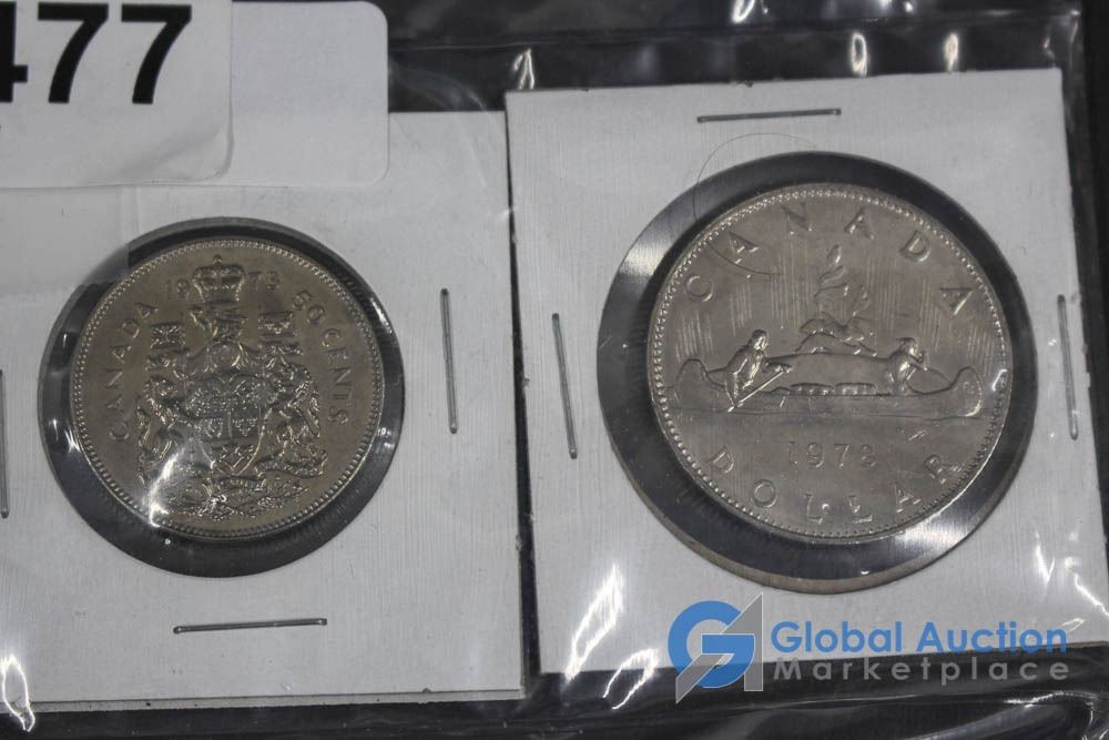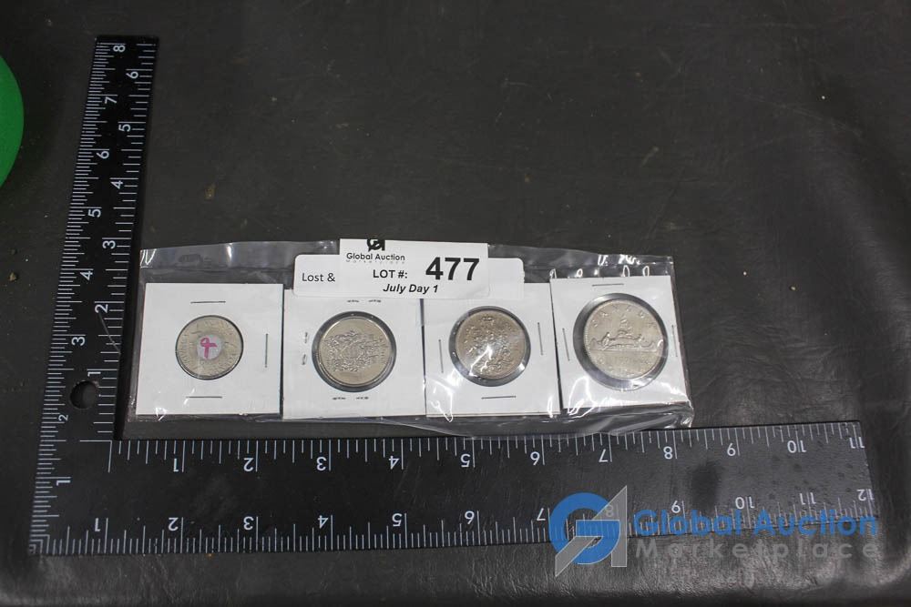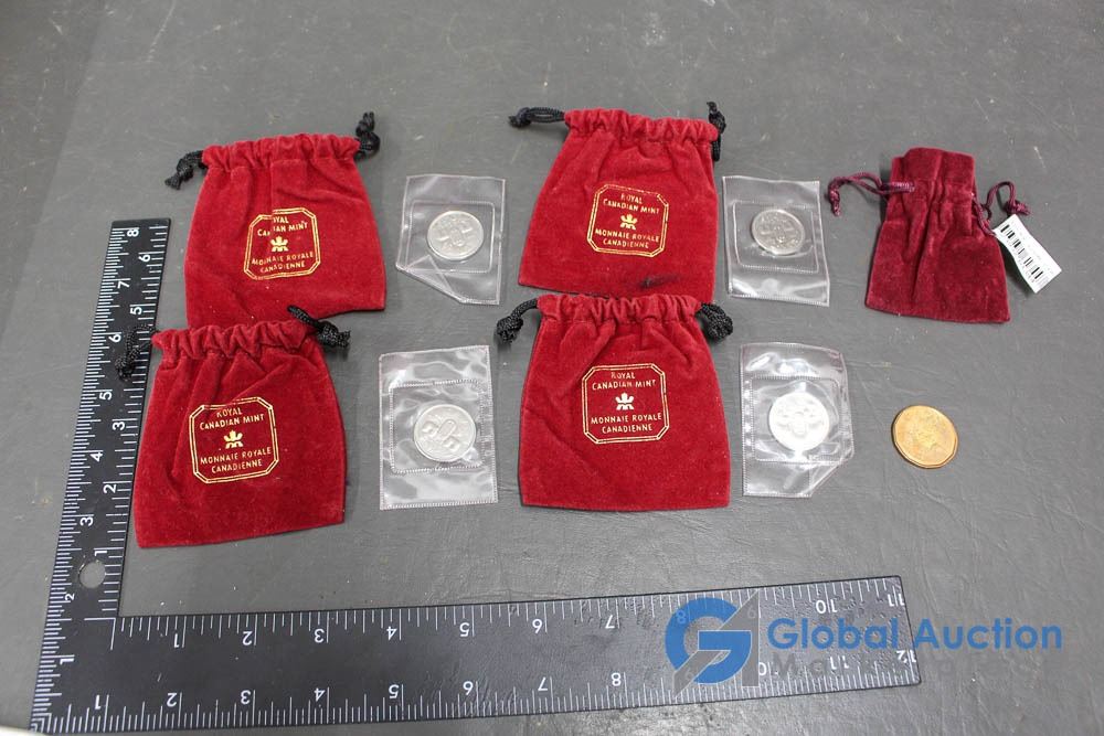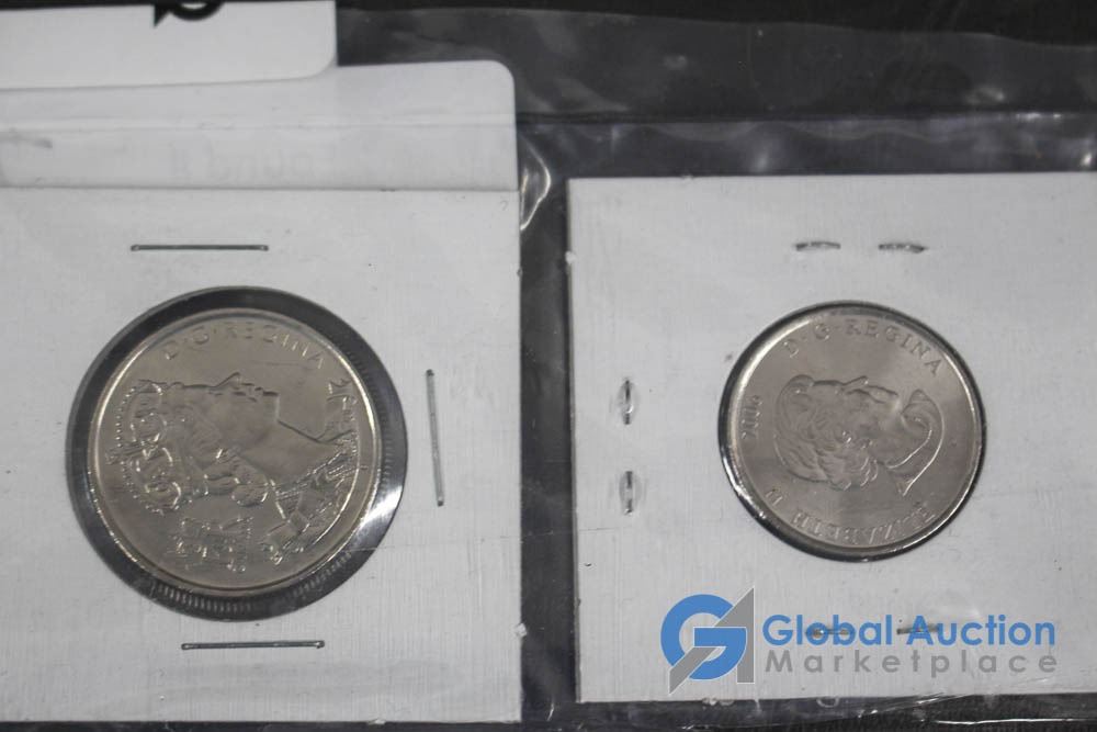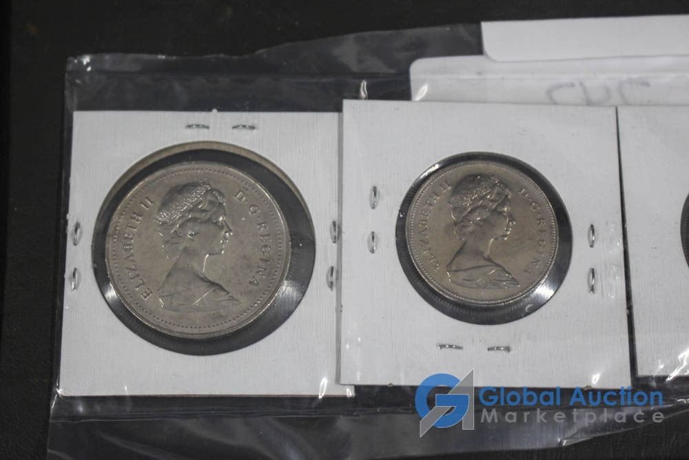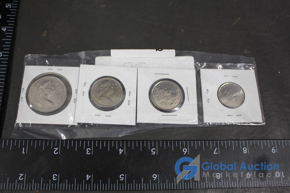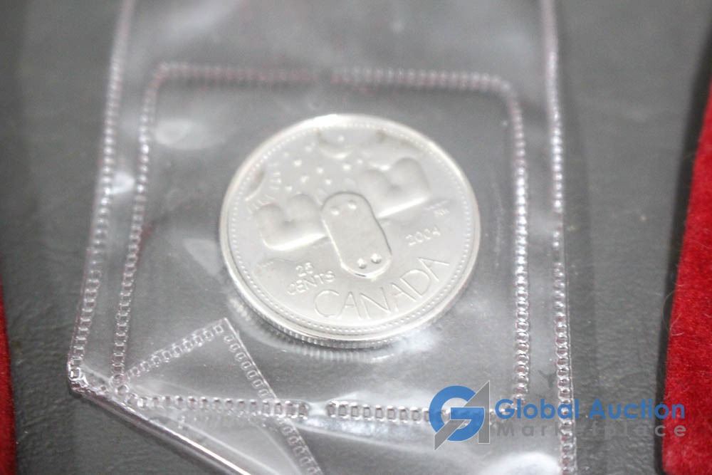 (12) 2000 25 Cent Collector Cards, (4) 2004 Moose Quarters, (1) Loonie, Assorted Fifty Cent Pieces and More