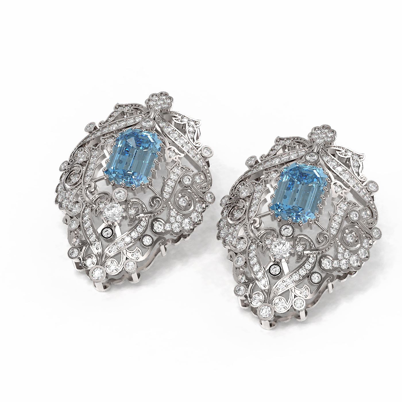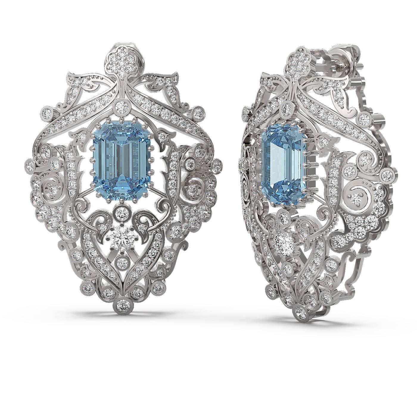 REF-521Y8X - SKU: 53524 ---- 12.23 ctw Aquamarine & Diamond Earrings 18K White Gold