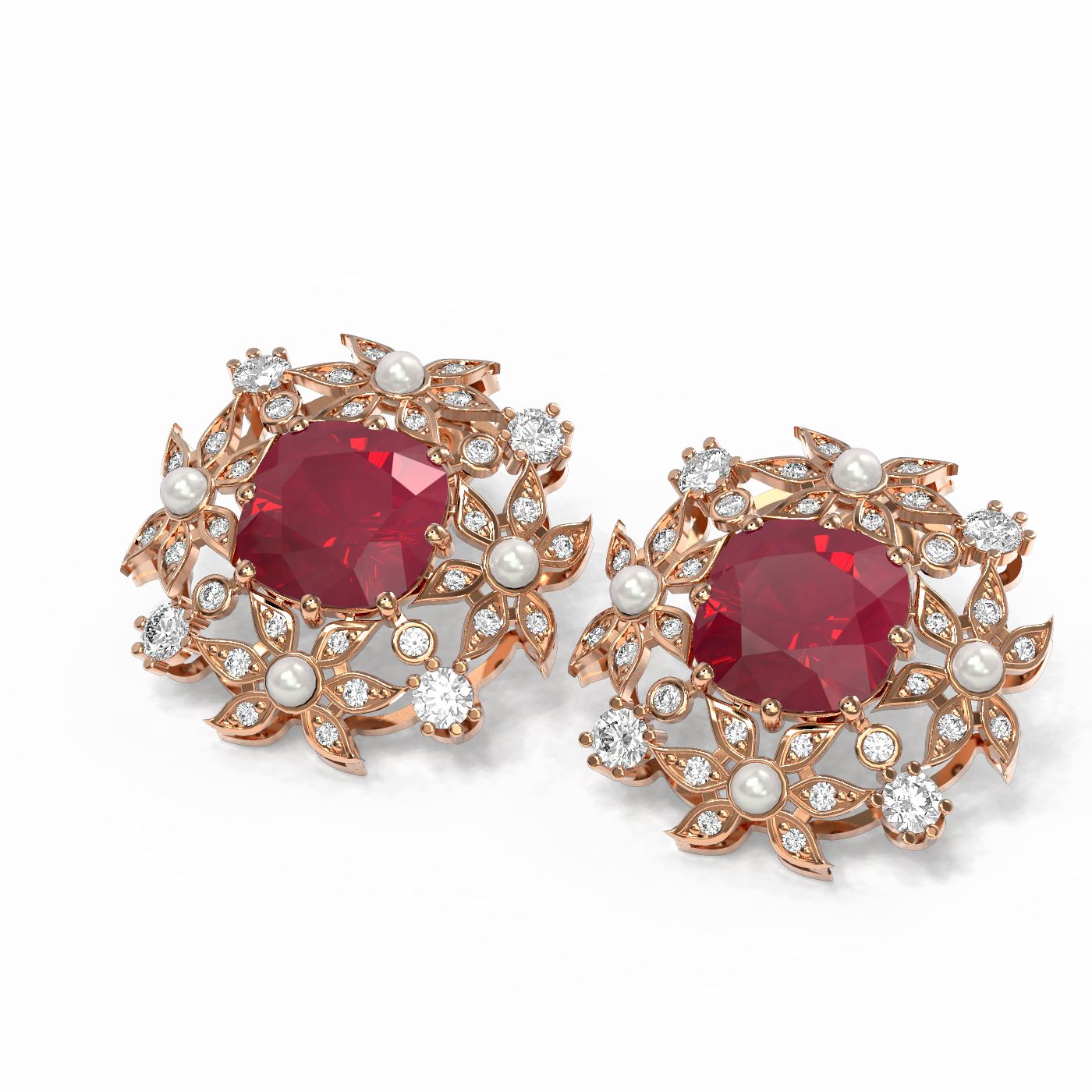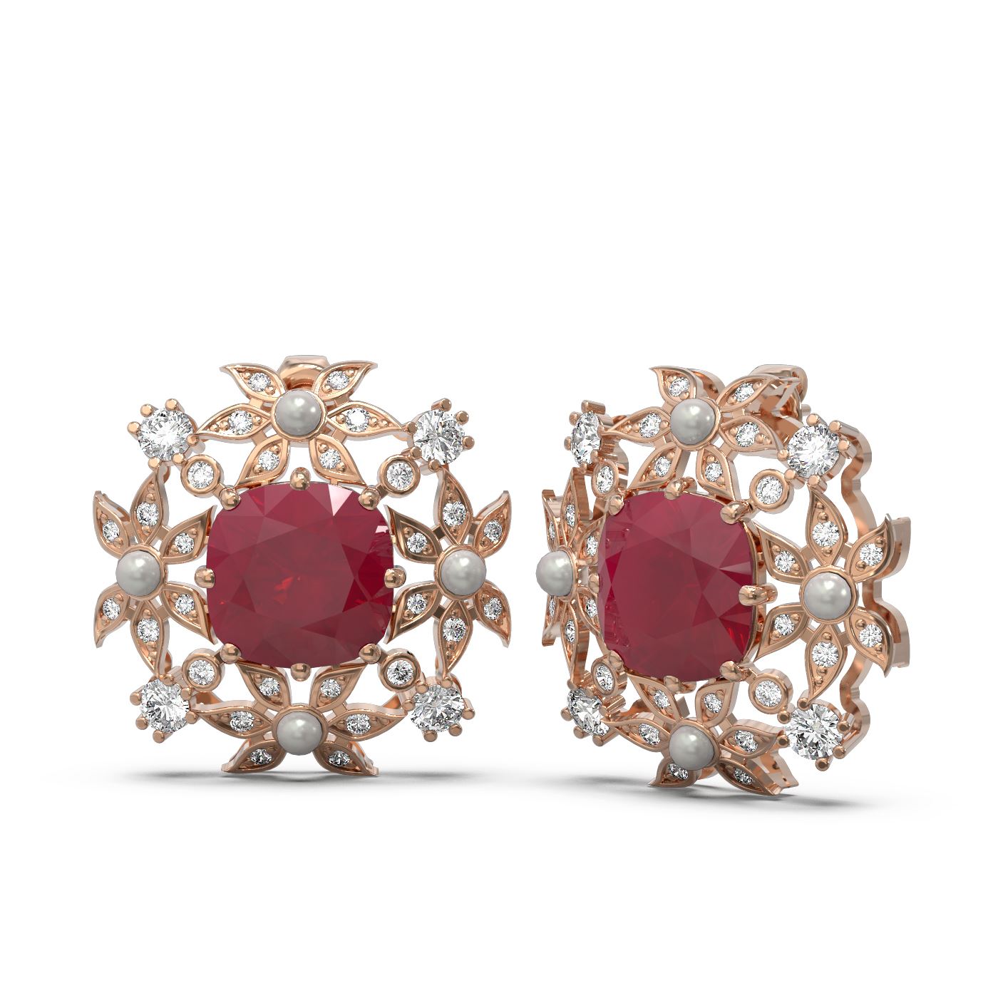 REF-343R6K - SKU: 54006 ---- 12.23 ctw Ruby & Diamond with Pearl Earrings 18K Rose Gold