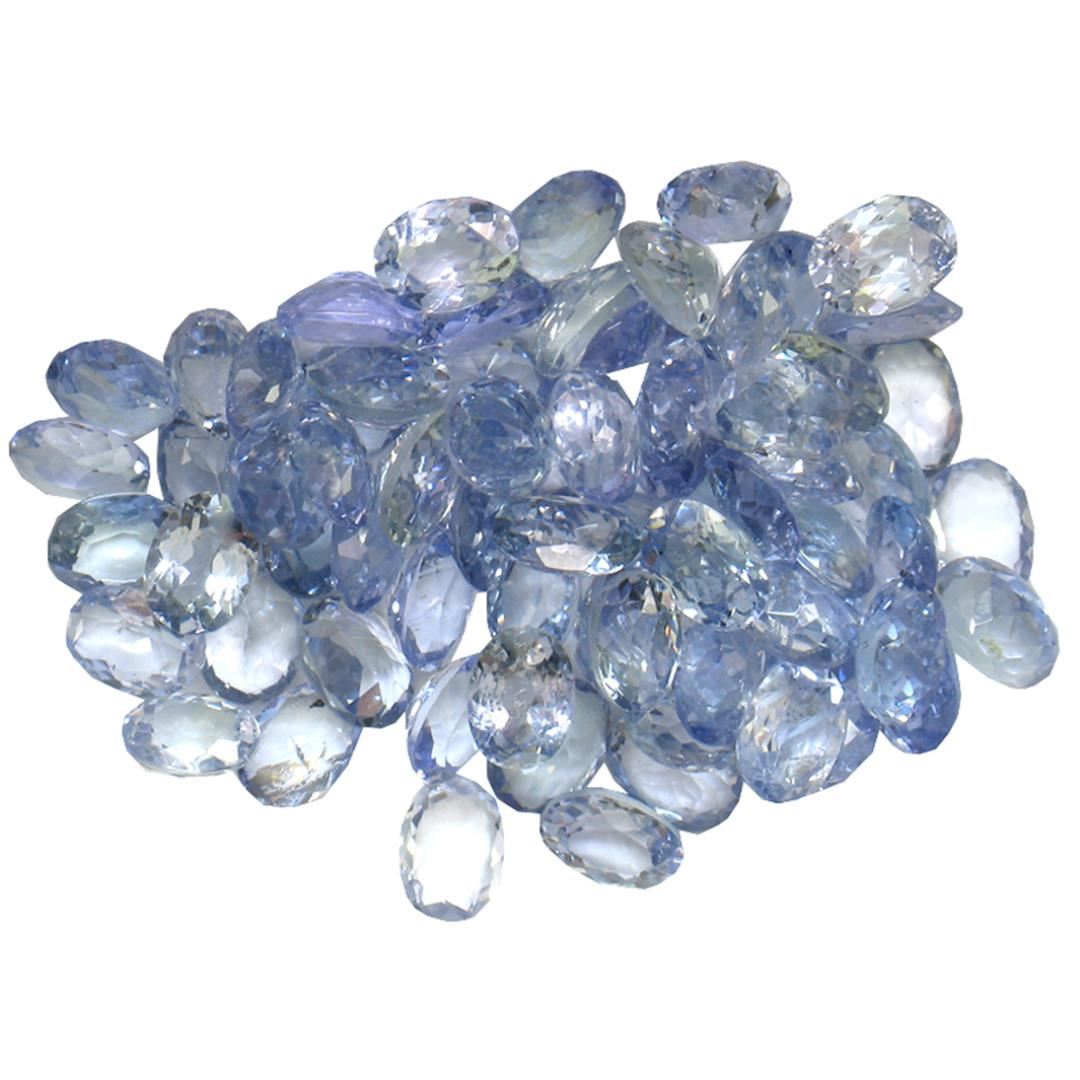 Forty-five oval mixed cut natural tanzanites exact total weight 12.27ct., clarity is slightly included, type I, medium dark, very slightly grayish, violetish blue color, (GIA vB 6/3), cut is good. Measurements & the color grade are an average for the group, Color grade is an average for the group, Transmitting light with no distortion, transparent, Indications of laboratory high temperature heat treatment. Westfield Appraised at $1,180.00.