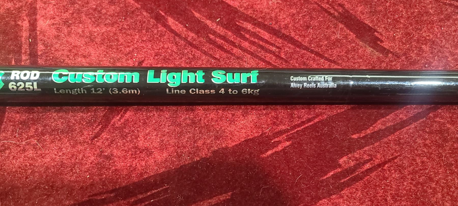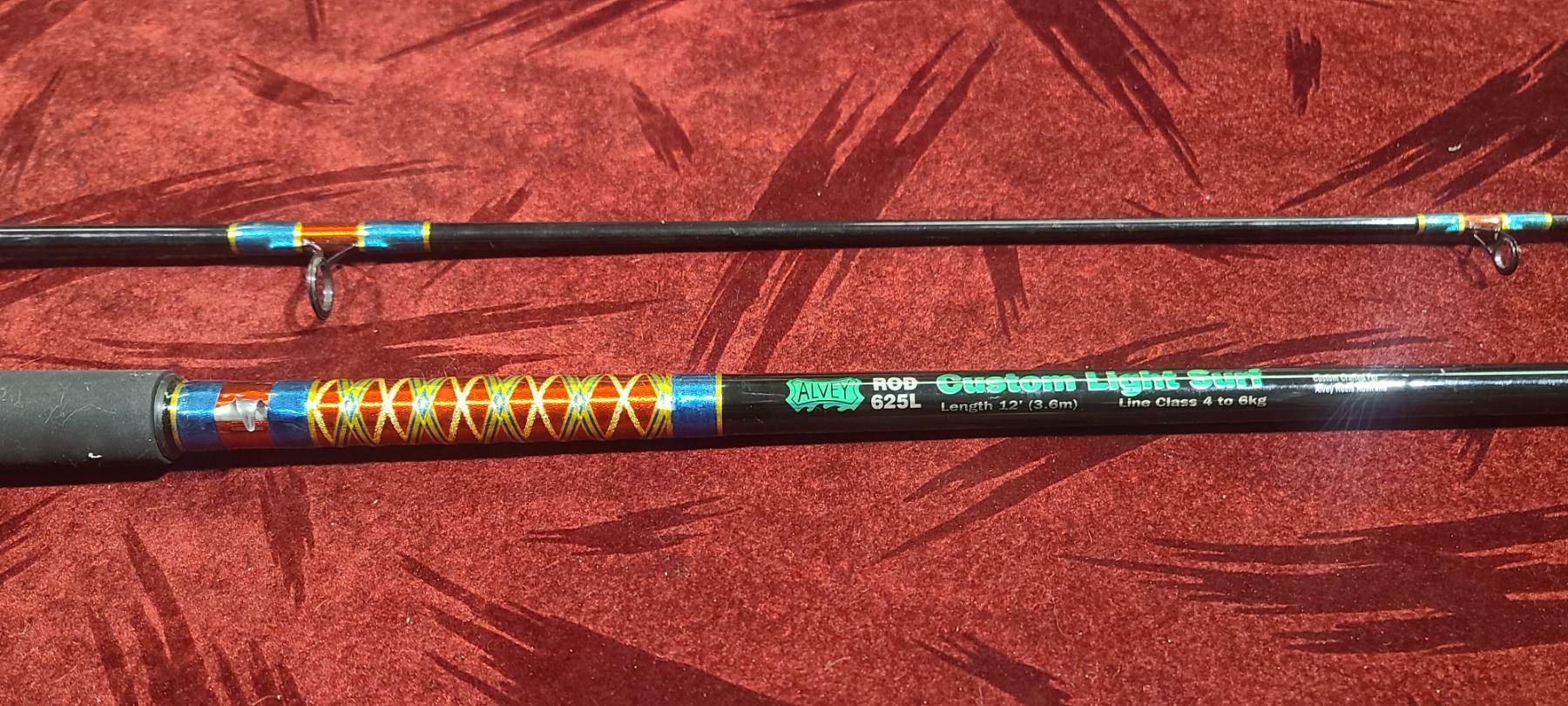 12' (3.6M) ALVEY ROD 625L LINE CLASS 4 TO 6KG - CUSTOM CRAFTED ALVEY REELS AUSTRAILIA 2PC ROD - WHITE INDICATOR TIP