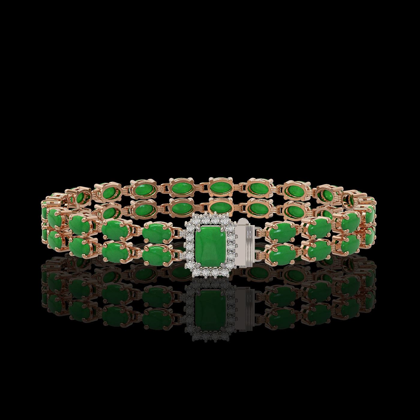 REF-236X4A - SKU: 45762 ---- 12.3 ctw Jade & Diamond Bracelet 14K Rose Gold
