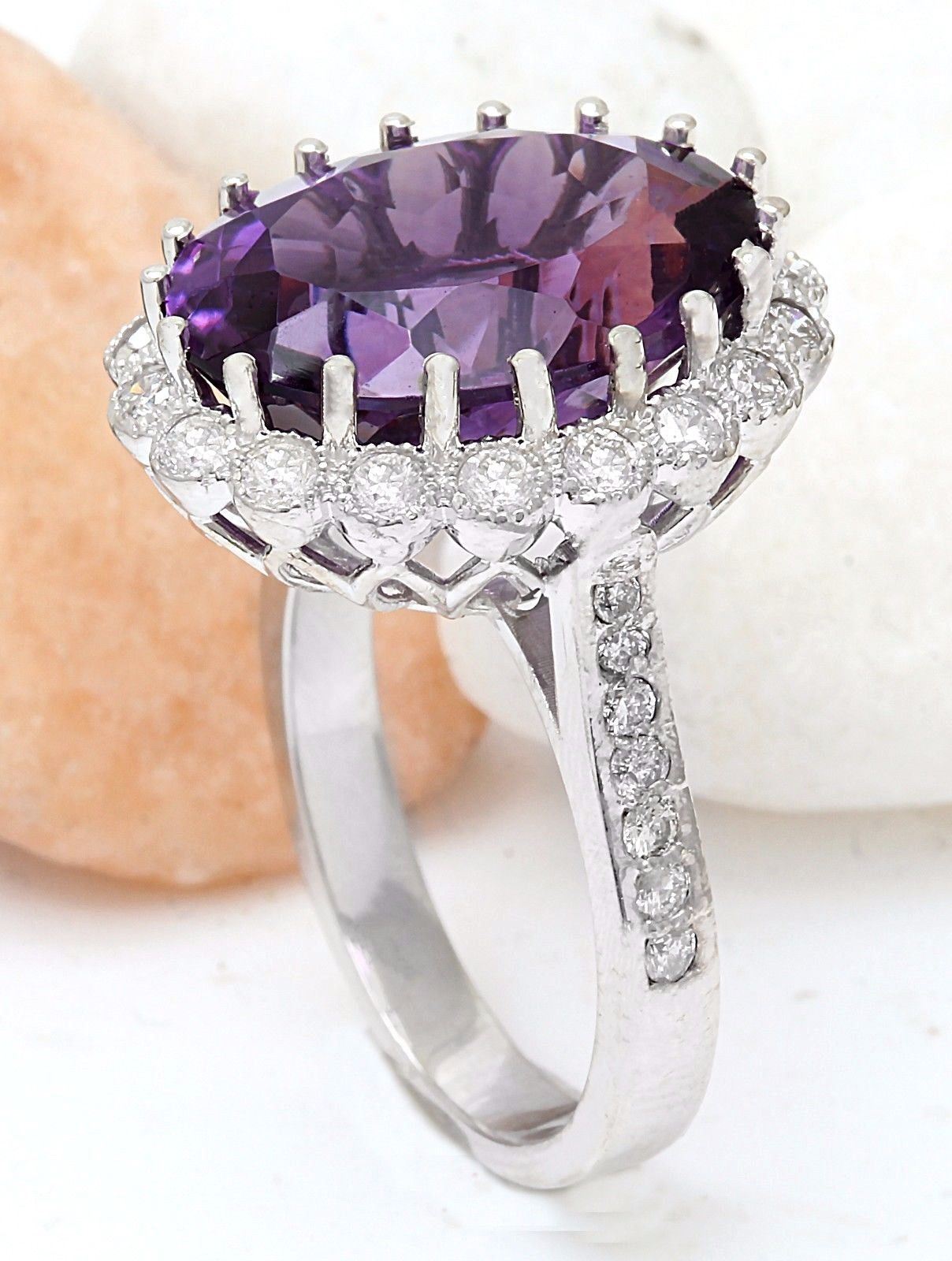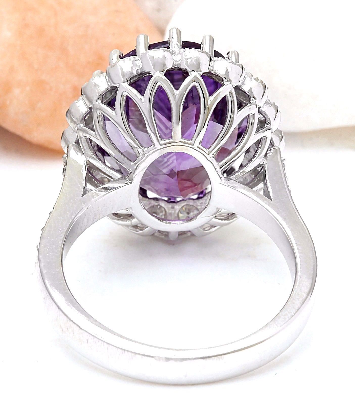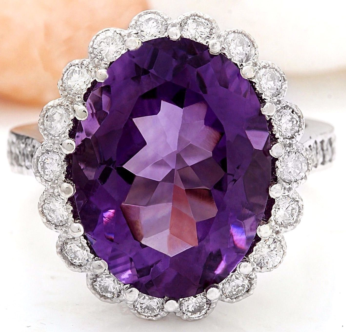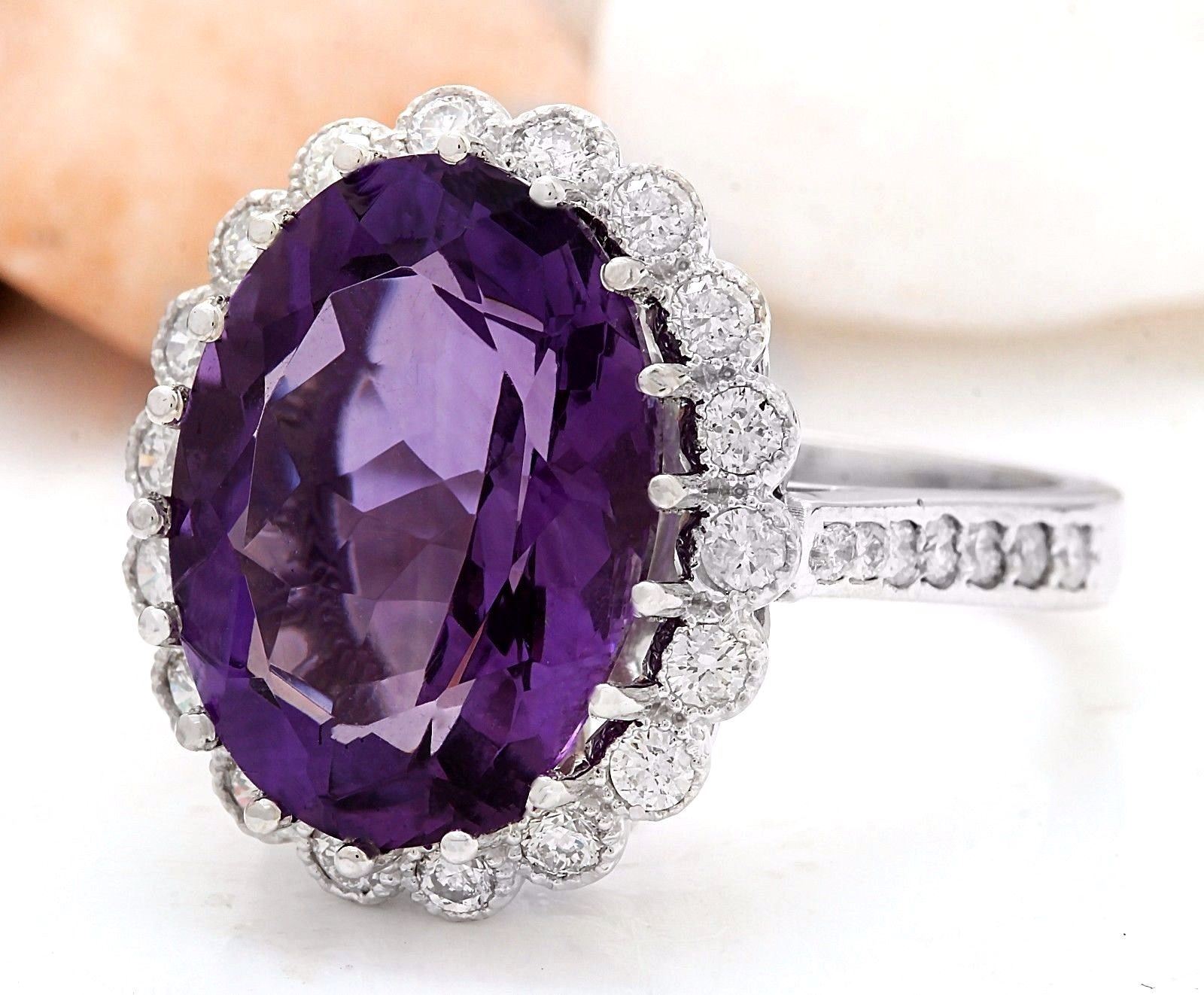 12.32 Carat Natural Amethyst 18K Solid White Gold Diamond Ring
