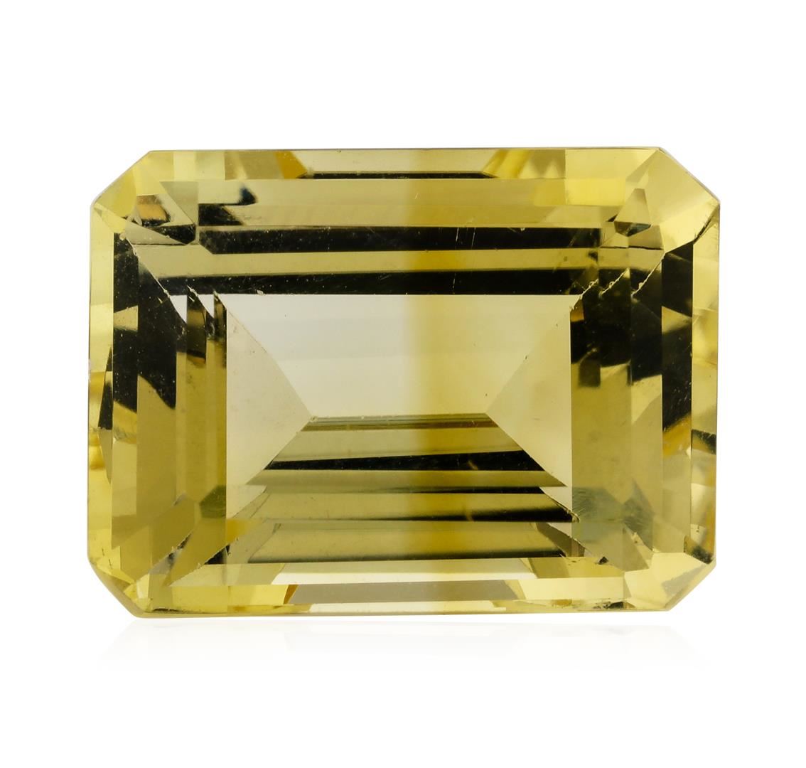 One natural emerald cut citrine quartz with an exact weight of 12.34ct., clarity is eye clean, slightly yellowish orange. Gemological Appraisals Services estimates the retail value at $370.2 GAS Appraised.
