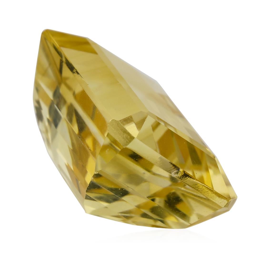 One natural emerald cut citrine quartz with an exact weight of 12.34ct., clarity is eye clean, slightly yellowish orange. Gemological Appraisals Services estimates the retail value at $370.2 GAS Appraised.
