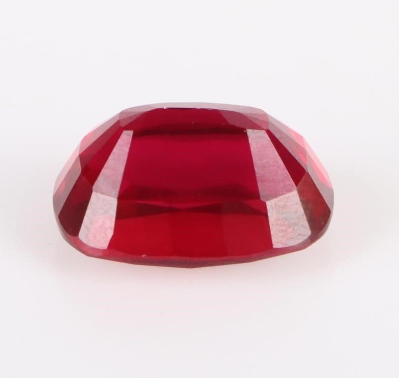 12.35ct cushion-cut red ruby loose gemstone. Stone has been electronically tested and identified, tester does not distinguish between natural and lab grown.