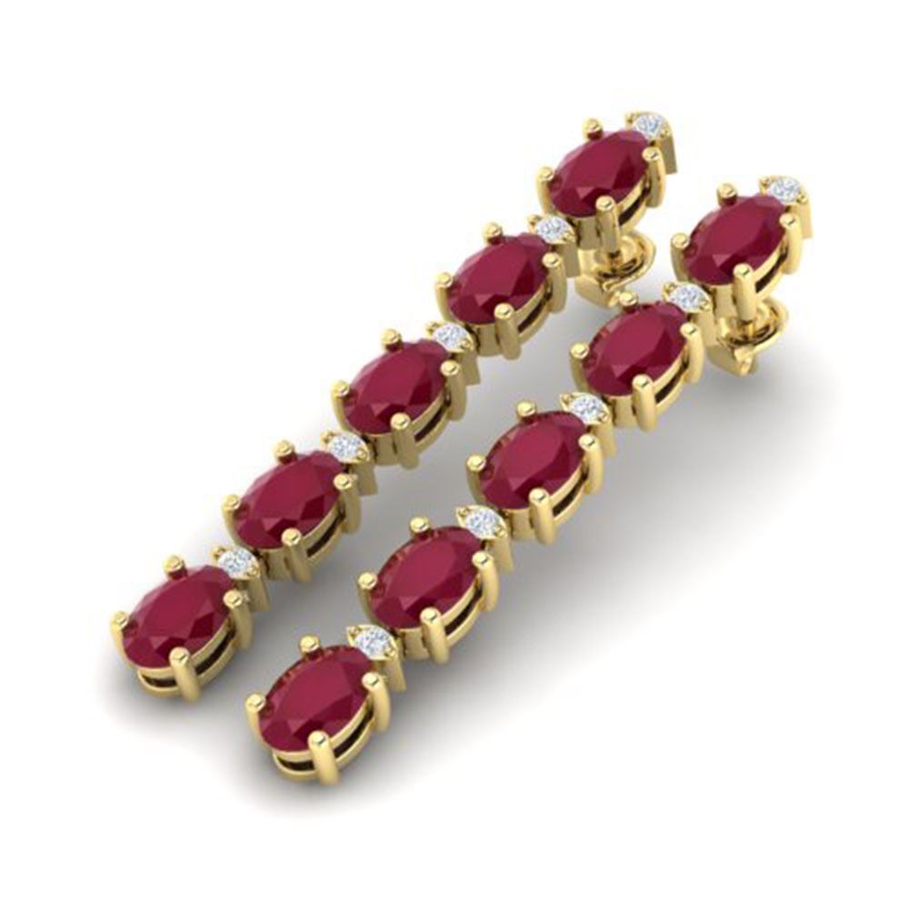 REF-89X3A - SKU: 29404 ---- 12.36 ctw Ruby & VS/SI Certified Diamond Tennis Earrings 10k Yellow Gold