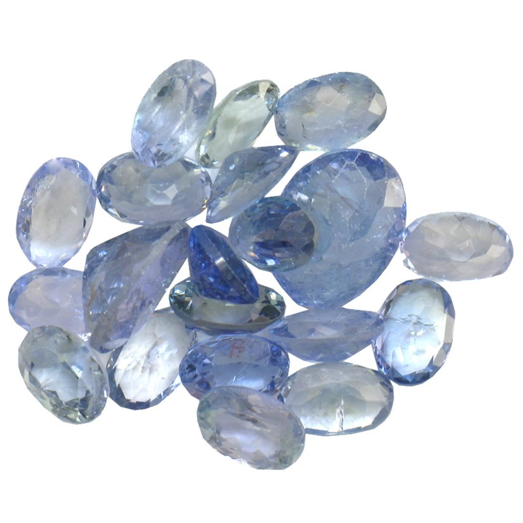 Twenty oval mixed cut natural tanzanites exact total weight 12.36ct., clarity is slightly included, type I, medium dark, very slightly grayish, bluish violet color, (GIA bV 6/3), cut is good. Transmitting light with a minimum of distortion, transparent. Naturally occurring internal & external characteristics are present. Color grade is an average for the group. Tanzanite is a very rare gemstone that is only found in the country of Tanzania. Originally discovered in 1967. Tiffany & Company, named the stone Tanzanite. It is found in the Usumburu Mountains that border the Umba Valley of northern Tanzania. Tanzanite occurs in gray, brown, violet, blue, reddish-purple, & green. The gem is interesting because of its exceptional pleochroism. Rotated in different directions a tanzanite will exhibit multiple changes of color. Tanzanite has a low tolerance to ultrasonic cleaning, and should not be cleaned using this method. Westfield Appraised at $1,190.00.
