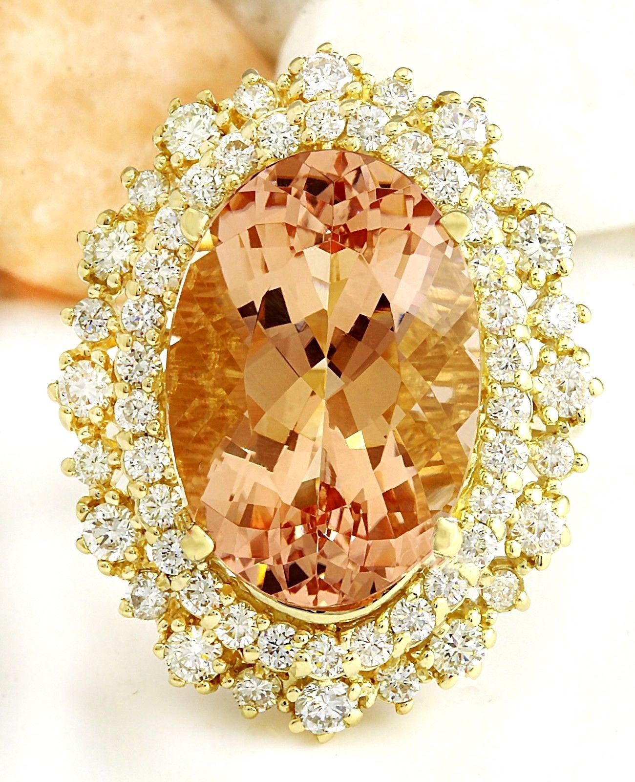 12.40 Carat Natural Morganite 18K Solid Yellow Gold Diamond Ring