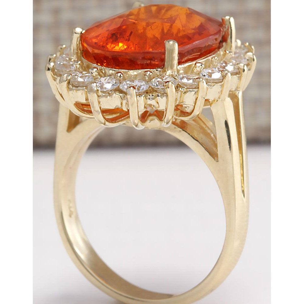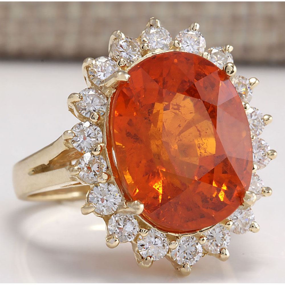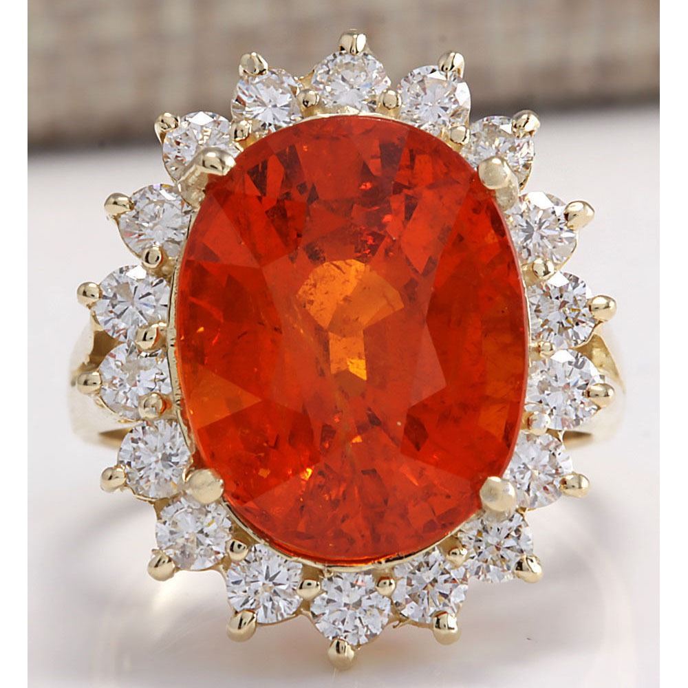 12.41 CTW Natural Mandarin Garnet And Diamond Ring 14K Solid Yellow Gold