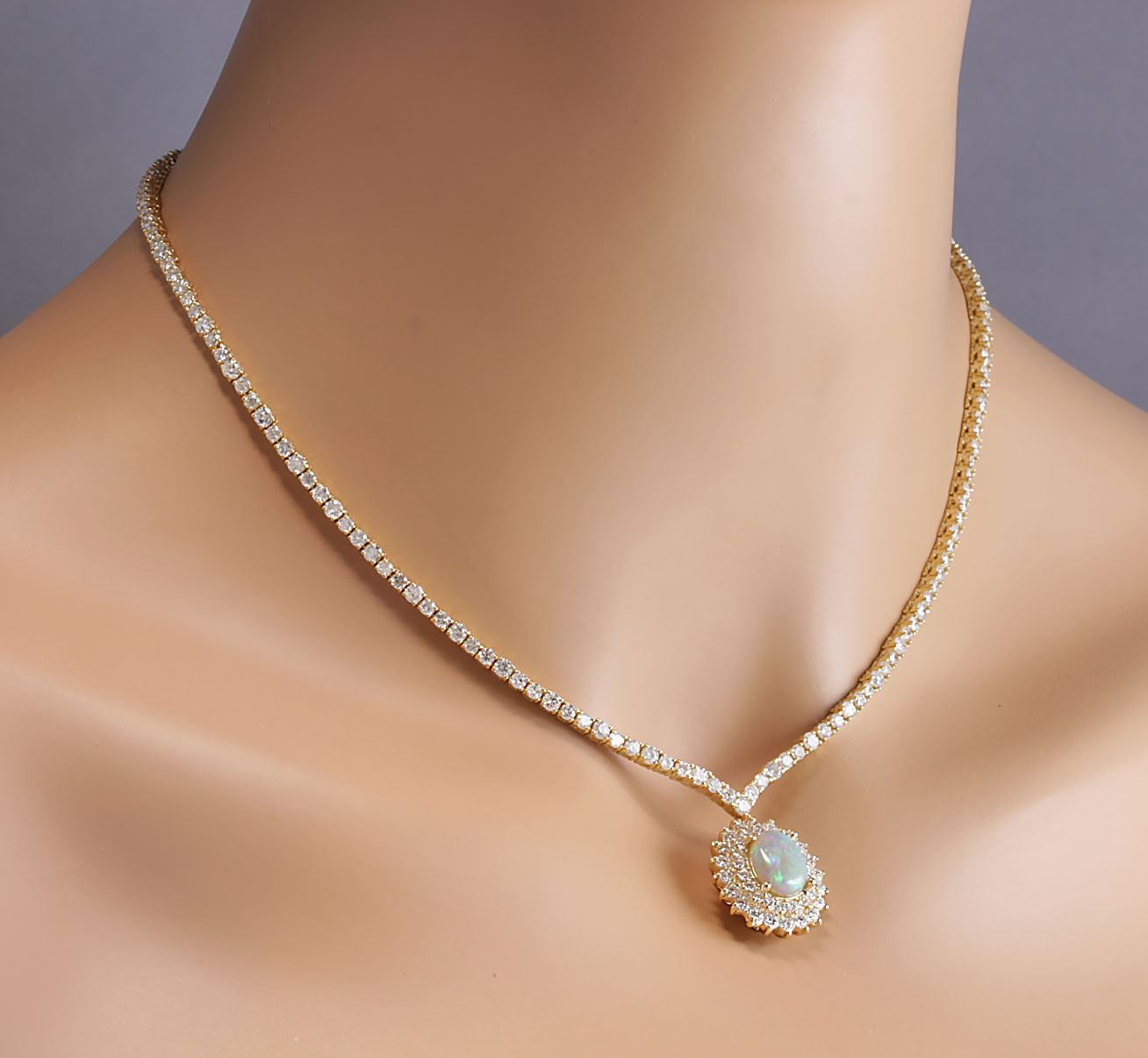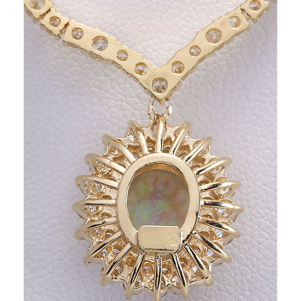12.45 CTW Natural Australian Opal And Diamond Necklace In 14K Yellow Gold