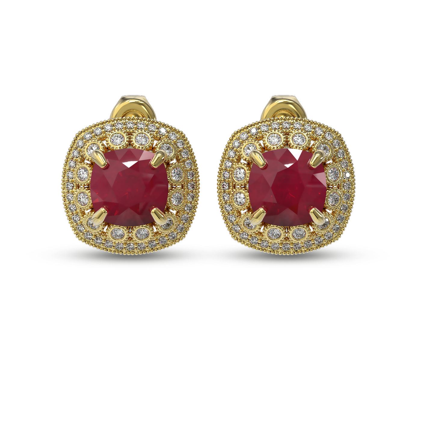 SKU: 43981 ---- 12.49 ctw Certified Ruby & Diamond Victorian Earrings 14K Yellow Gold