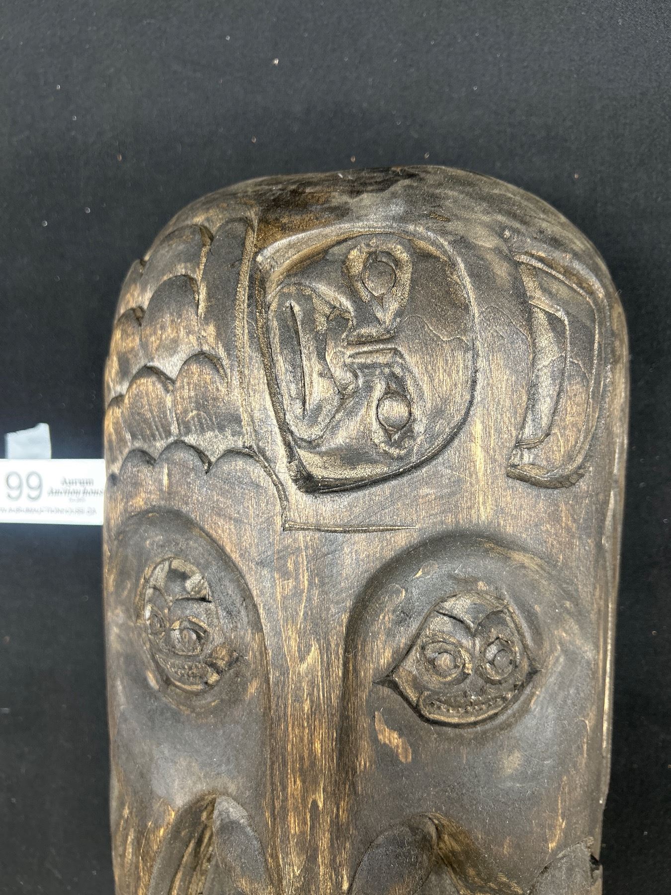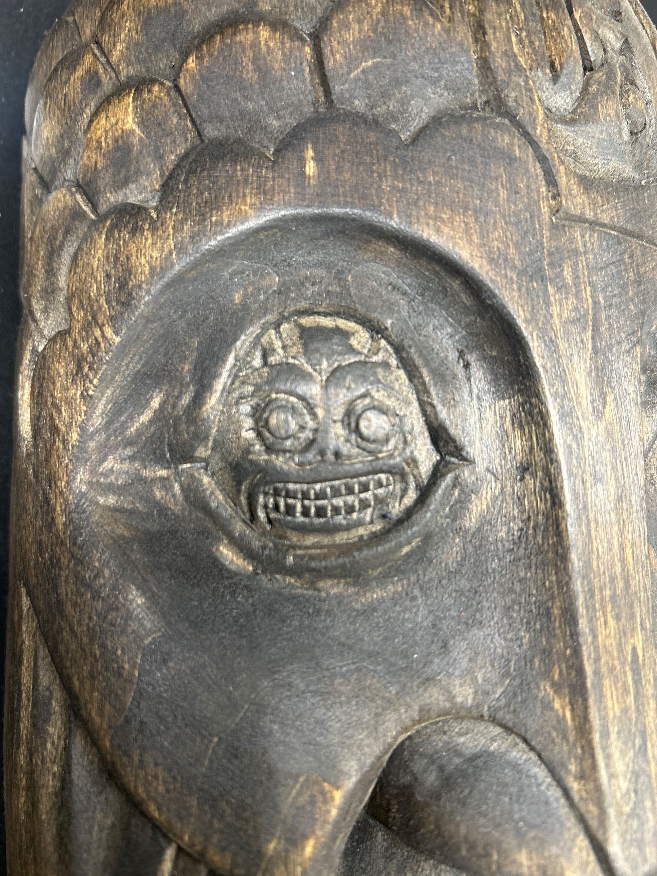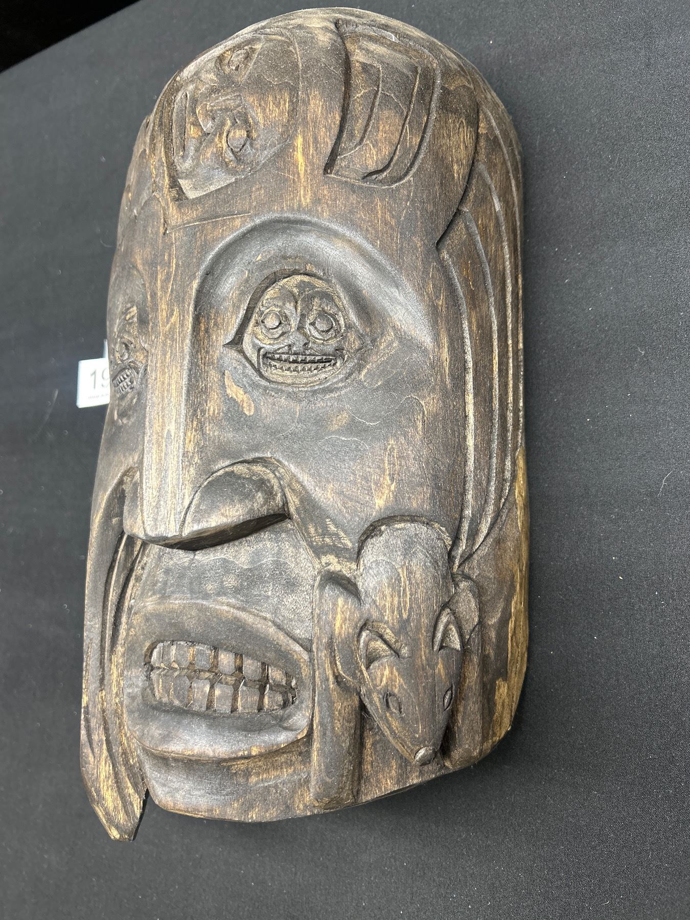 12.5" Talll Carved West Coast Native Mask Lots of Detail with Faces Carved in the Eyes Etc.