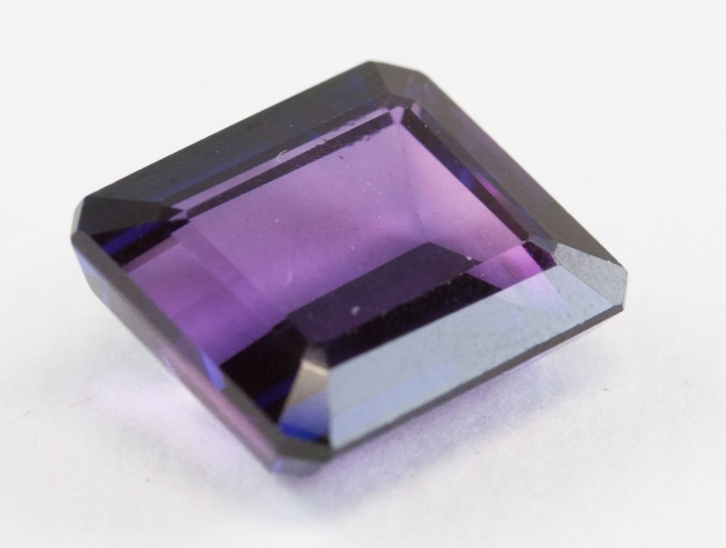One (1) 12.50 ct emerald cut purple to blue alexandrite. Origin: Brazil. Accompanied with GGL certificate. 13.79 x 11.66 x 6.20 mm.