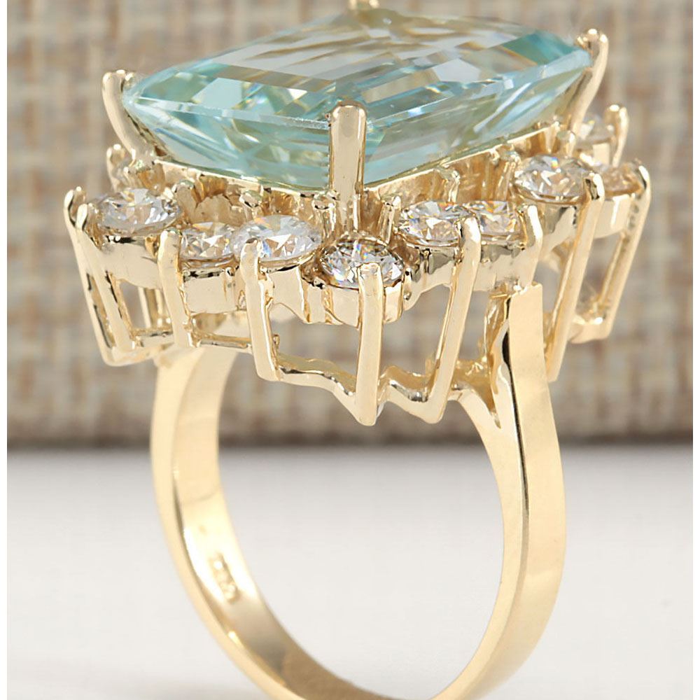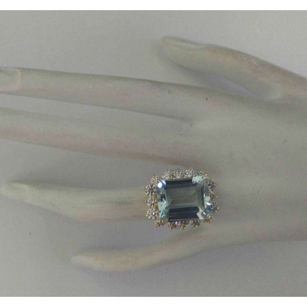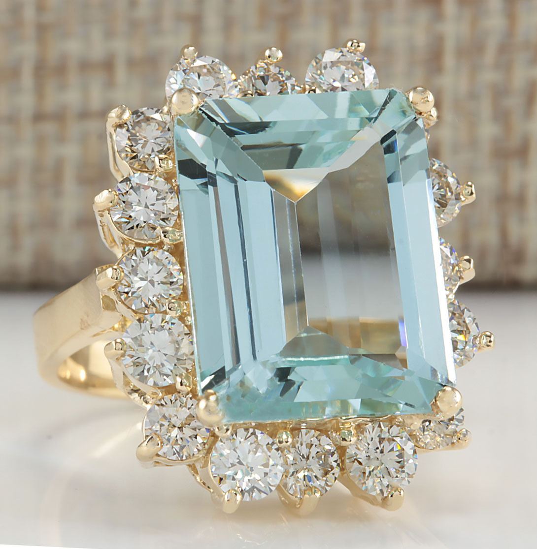 12.57 CTW Natural Aquamarine And Diamond Ring In 18K Yellow Gold