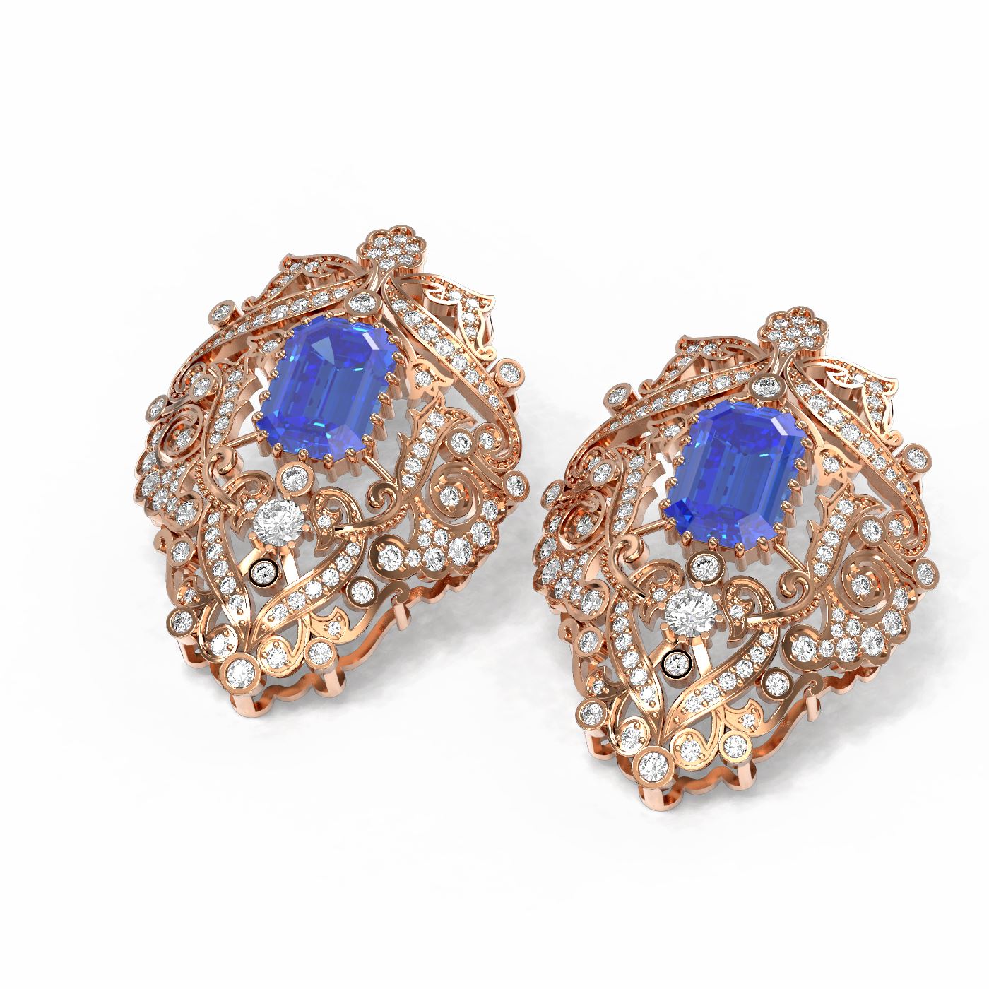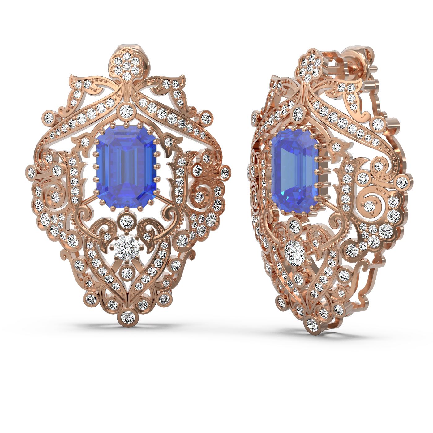 SKU: 53531 ---- 12.57 ctw Tanzanite & Diamond Earrings 18K Rose Gold