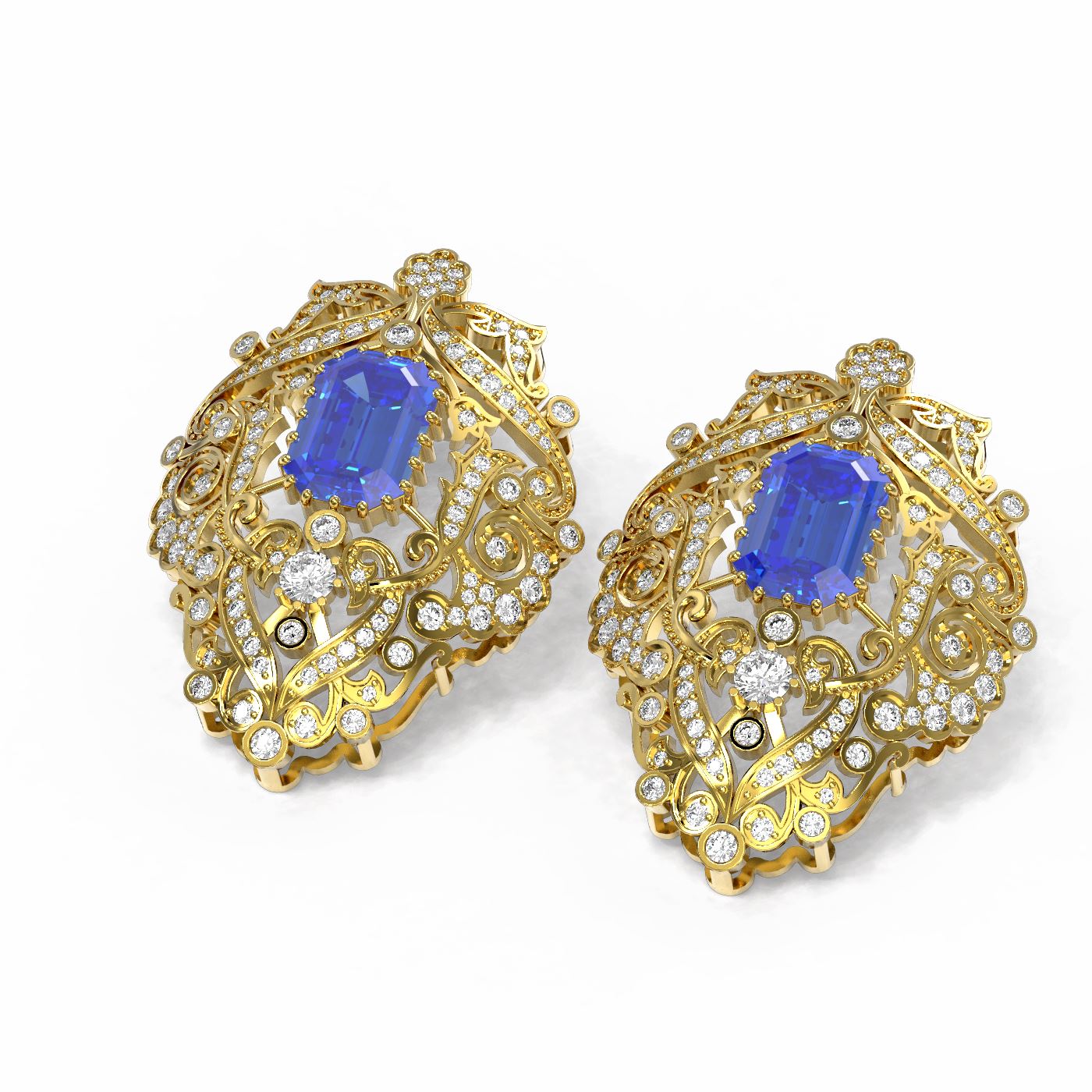 SKU: 53532 ---- 12.57 ctw Tanzanite & Diamond Earrings 18K Yellow Gold