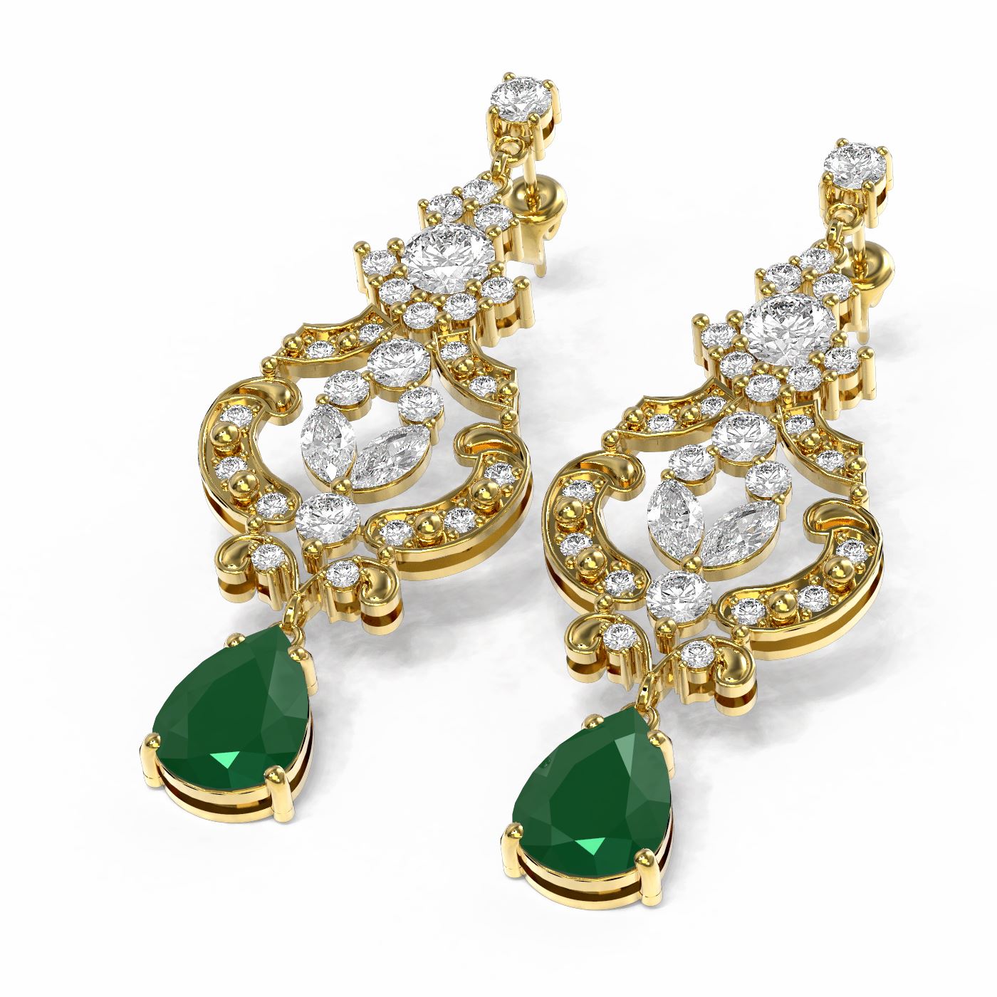 REF-818K2Y - SKU: 56587 ---- 12.64 ctw Emerald & Diamond Earrings 18K Yellow Gold