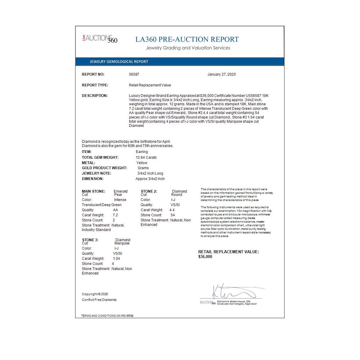 Any appraisals or evaluations provided are solely for the convenience of the Bidder and USJL makes no warranties of any kind relating to them. Appraisals may include valuations which reflect the full, highest retail price of the item in a specific geographic region, the item's insurance replacement value, or both. No price estimate or appraisal value should be considered to represent the investment or resale value of the item. Such values are to be solely based on the due diligence evaluation of the Bidder absent any estimate or appraisal value presented.