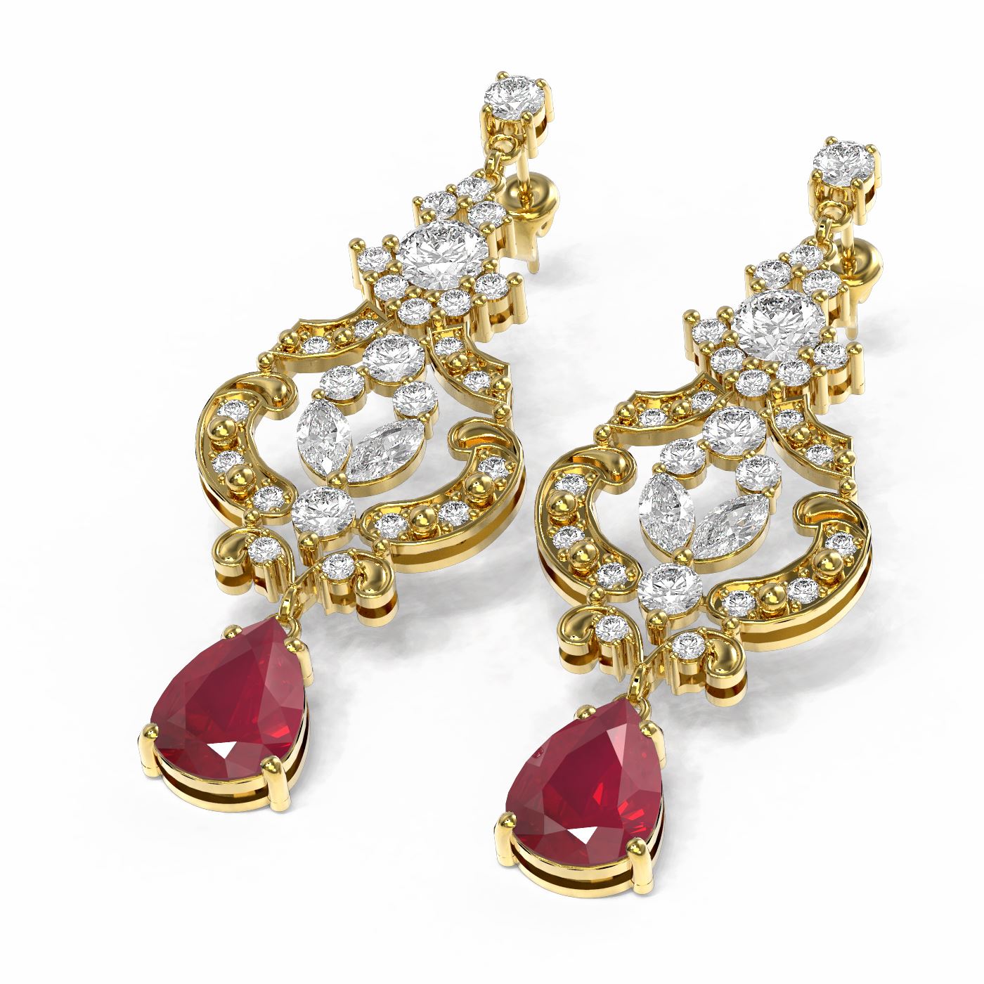 SKU: 56590 ---- 12.64 ctw Ruby & Diamond Earrings 18K Yellow Gold