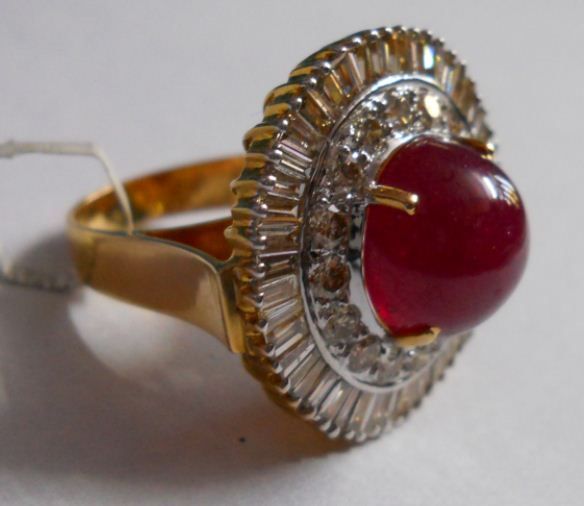 Ring of total weight 12.697g in 14kt 9.743g Gold ,Diamond:2.89 Ctw and Ruby:11.88 Ctw