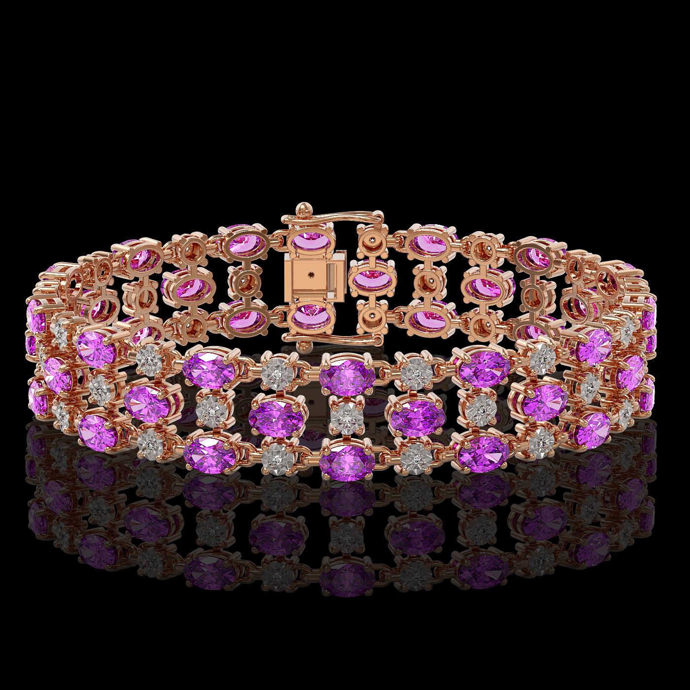 REF-209F3M - SKU: 40997 ---- 12.7 ctw Amethyst & Diamond Row Bracelet 10K Rose Gold