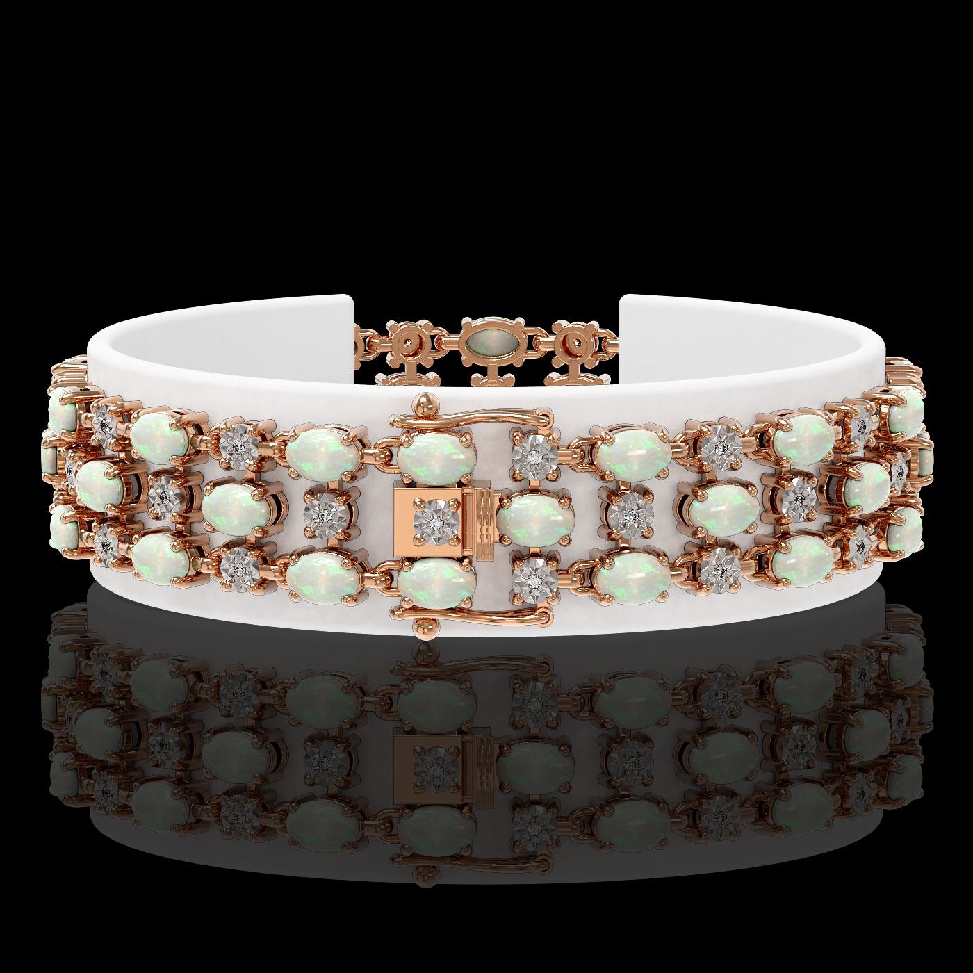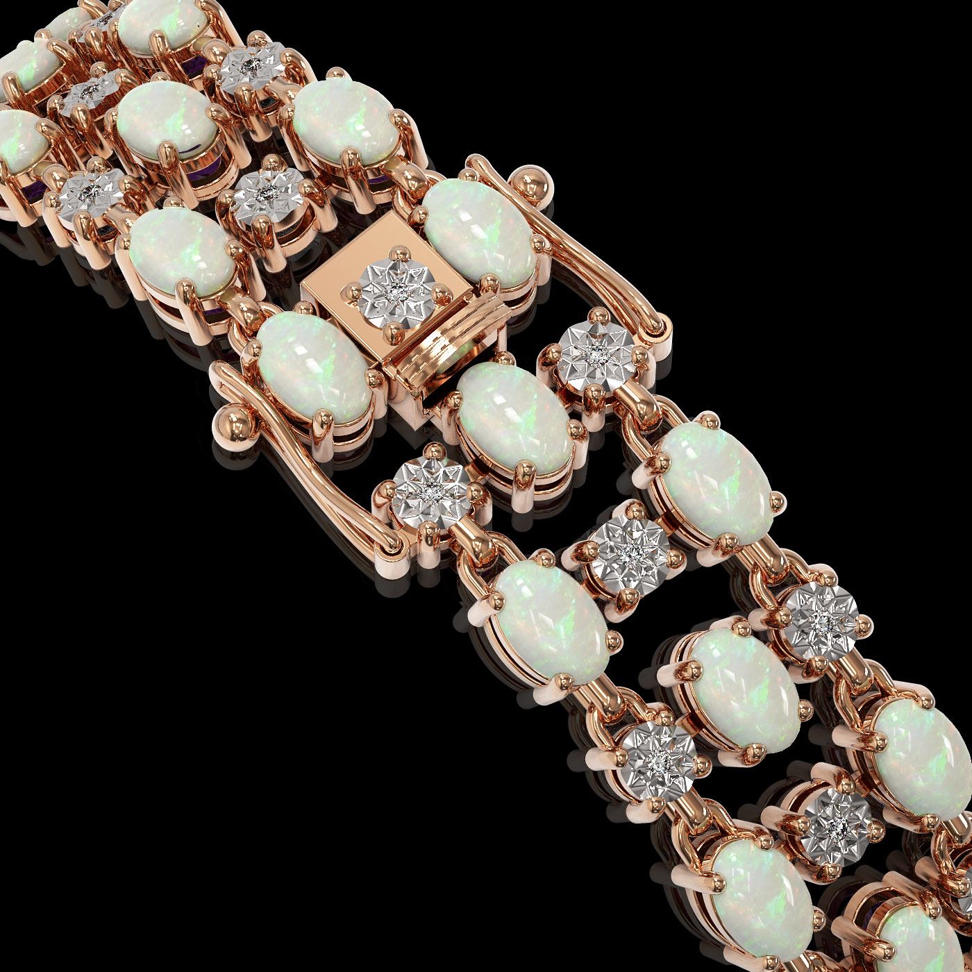 REF-245R5K - SKU: 40973 ---- 12.7 ctw Opal & Diamond Row Bracelet 10K Rose Gold