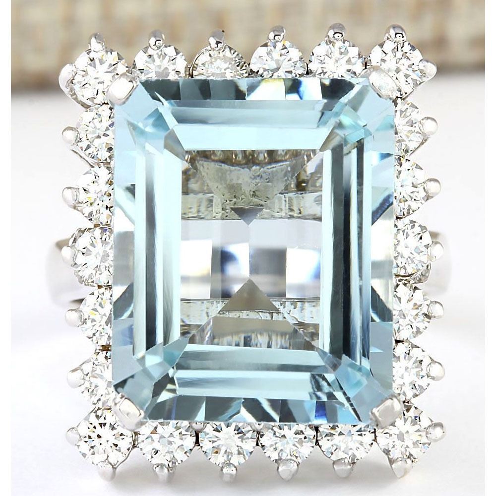 12.71 CTW Natural Aquamarine And Diamond Ring In 14K Solid White Gold