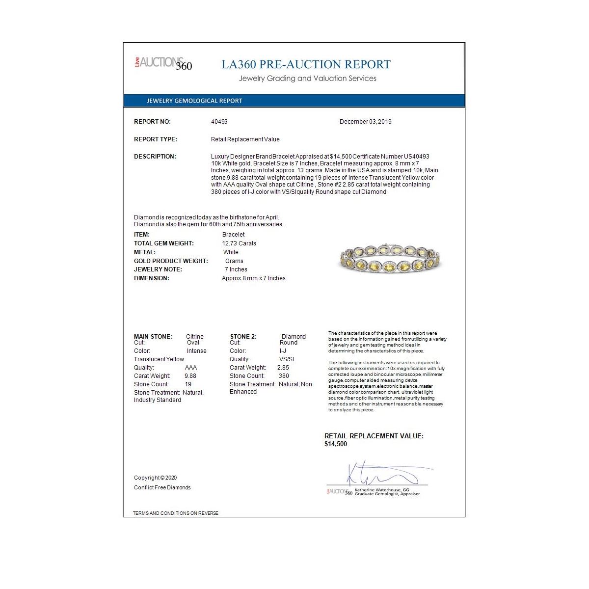 REF-263H6R - SKU: 40493 ---- 12.73 ctw Fancy Citrine & Diamond Micro Pave Halo Bracelet 10k White Gold