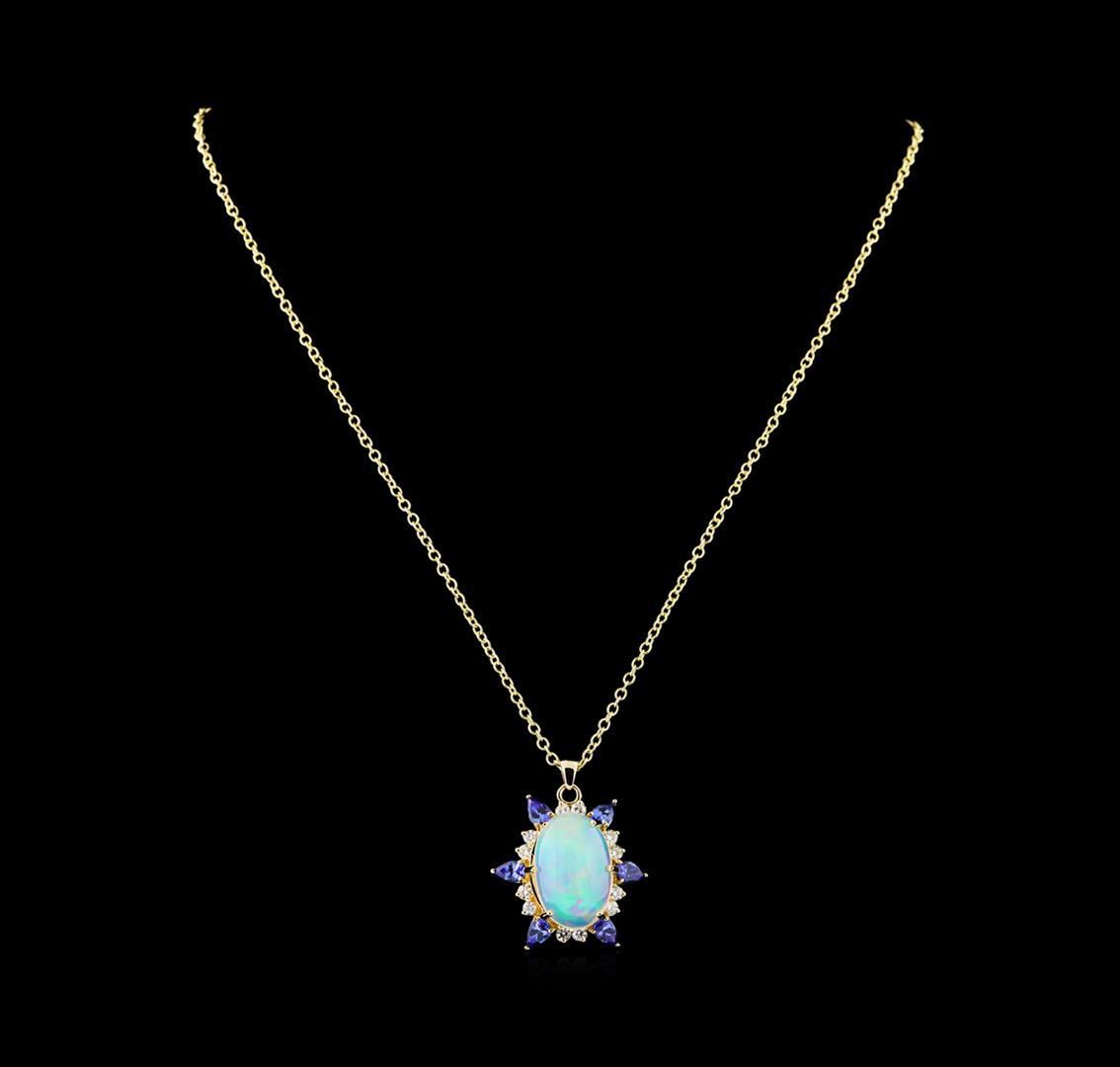 12.73 ctw Opal, Tanzanite and Diamond Pendant With Chain - 14KT Yellow Gold