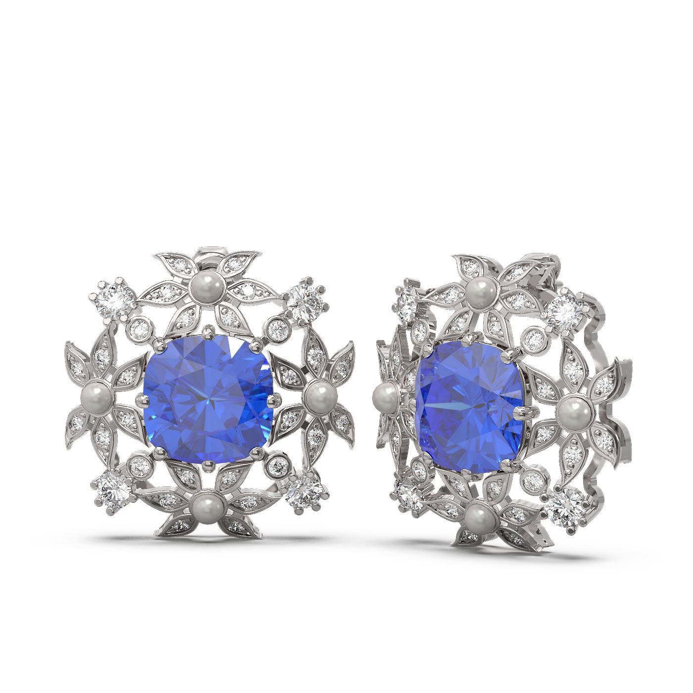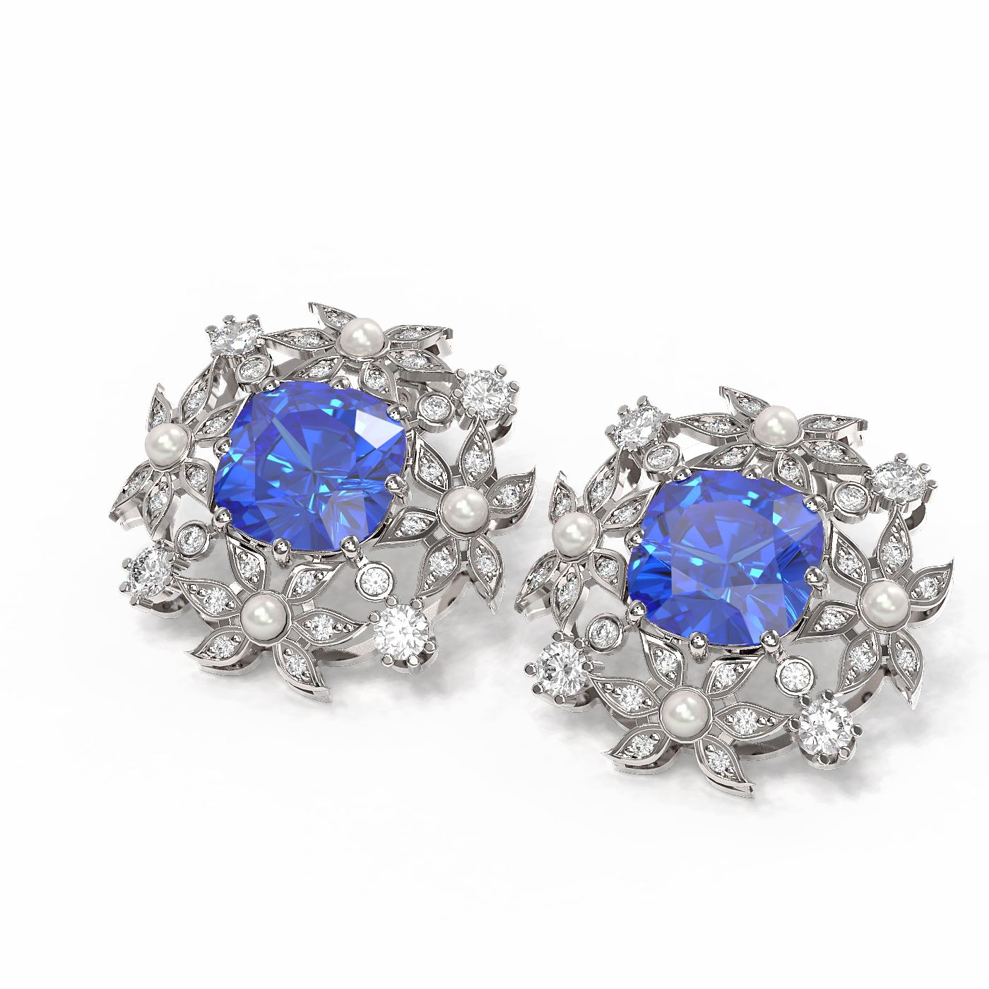 SKU: 54017 ---- 12.73 ctw Tanzanite & Diamond with Pearl Earrings 18K White Gold