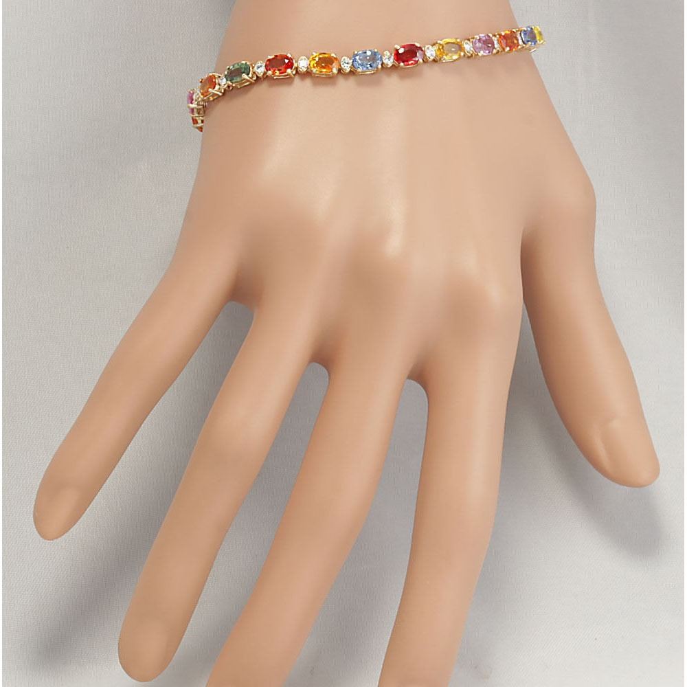 12.74 CTW Natural Sapphire And Diamond Bracelet In 14K Solid Yellow Gold