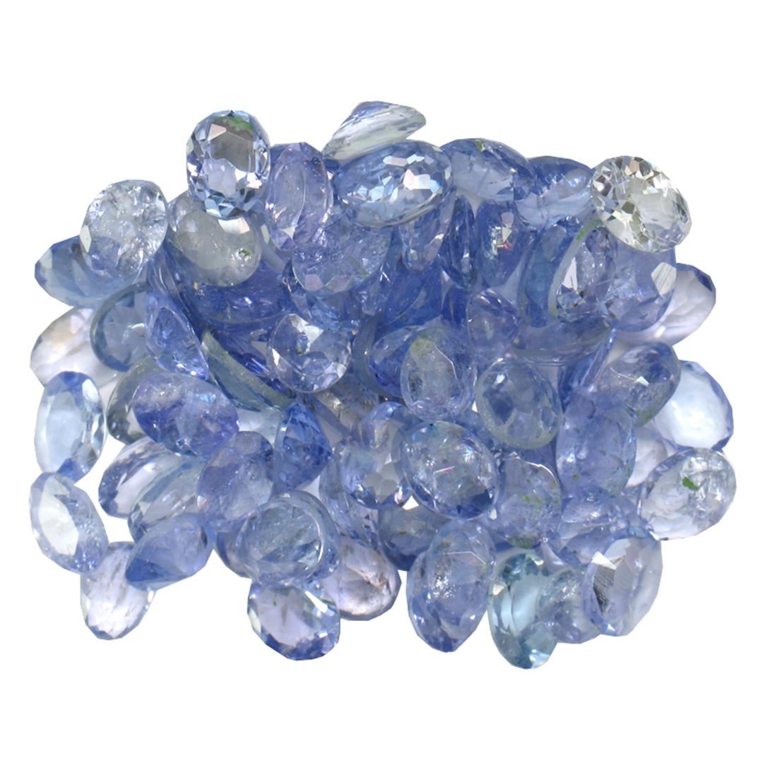 Forty oval mixed cut natural tanzanites, measuring 4.00 x 3.00 x 2.50mm, exact total weight 12.77ct., clarity is slightly included, type I, medium dark, very slightly grayish, violetish blue color, (GIA vB 6/3), cut is good. Measurements & the color grade are an average for the group, Color grade is an average for the group, Transmitting light with no distortion, transparent, Naturally occurring internal & external characteristics are present, Indications of multiple laboratory enhancements, including high temperature heat treatment. Westfield Appraised at $1,230.00.