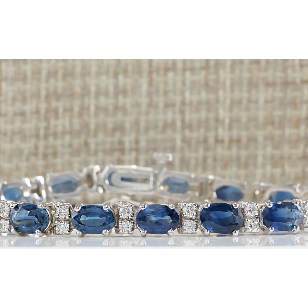 12.80 CTW Natural Blue Sapphire Diamond Bracelet 14K Solid White Gold