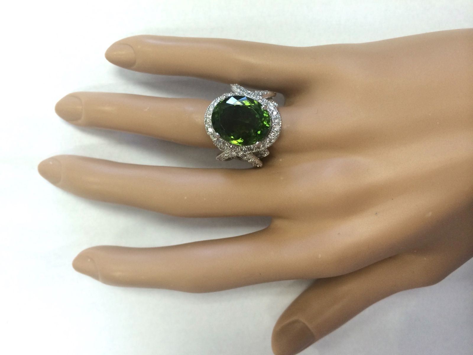12.80 CTW Natural Green Tourmaline And Diamond Ring 14k Solid White Gold